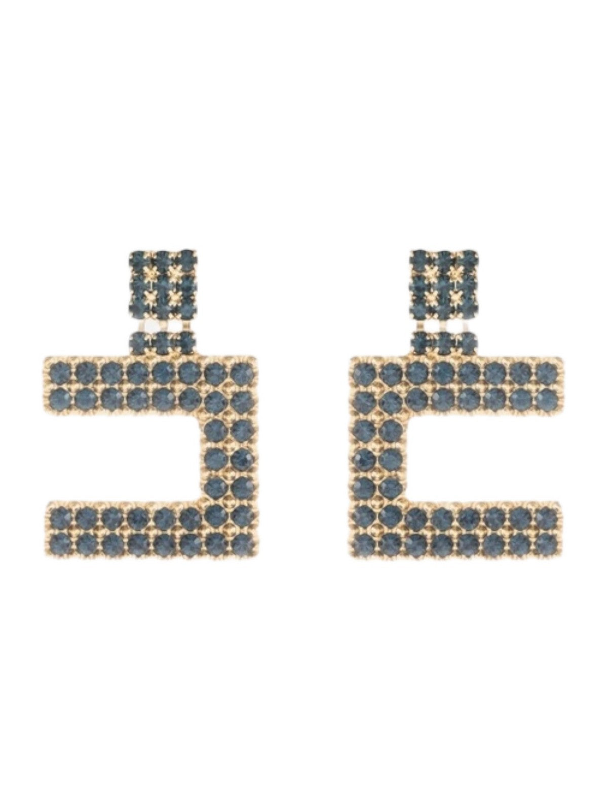 Orecchini logo ELISABETTA FRANCHI con clip in metallo silver intarsiati di strass.