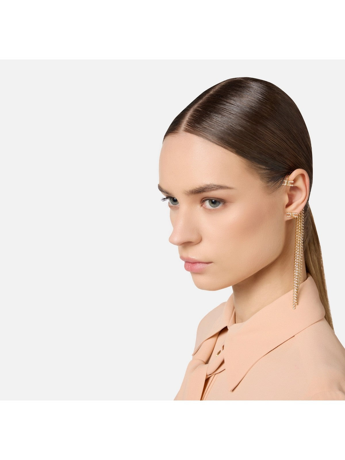 Earcuff ELISABETTA FRANCHI in metallo dorato con lunghi pendenti in strass e doppio logo