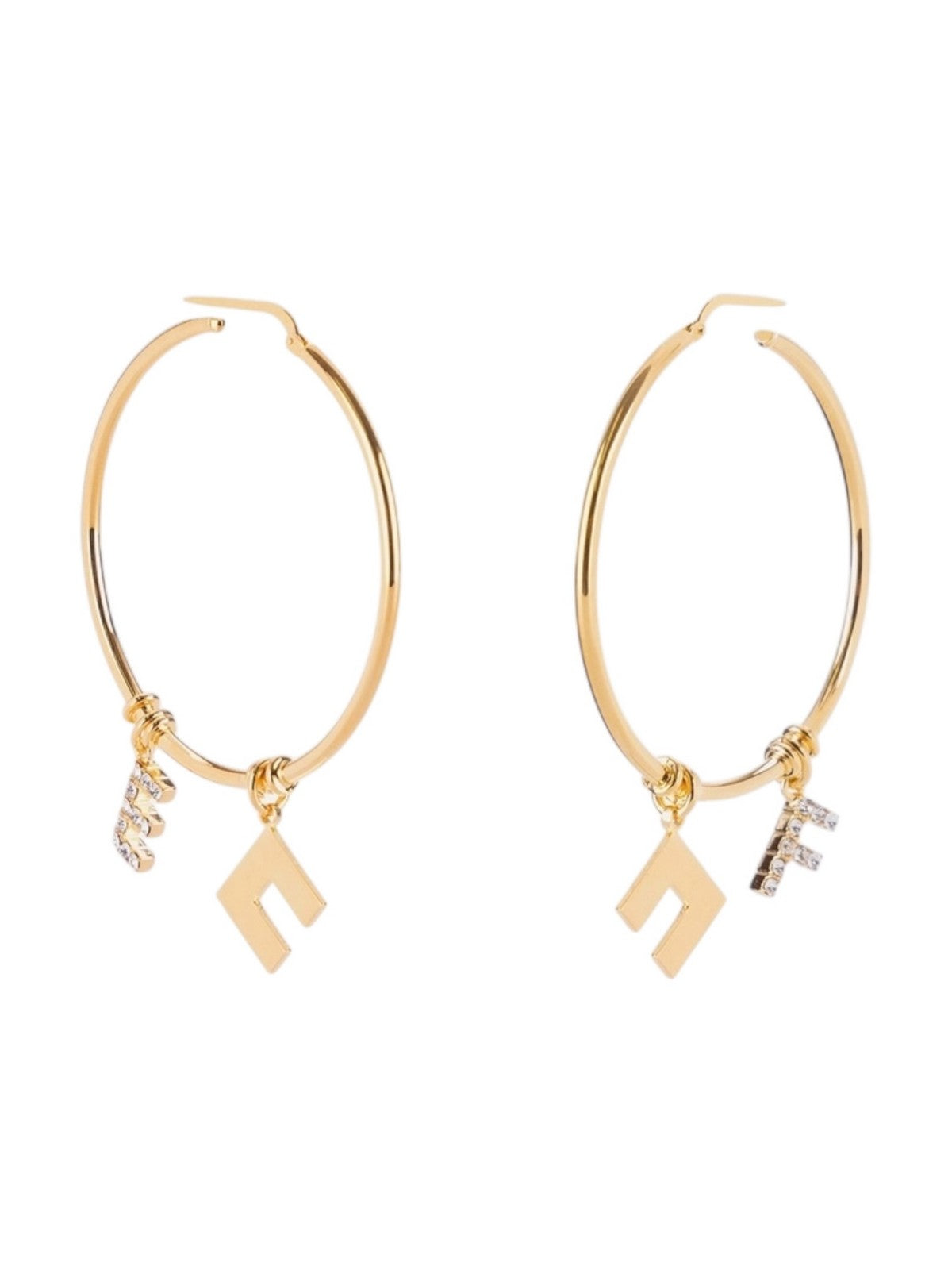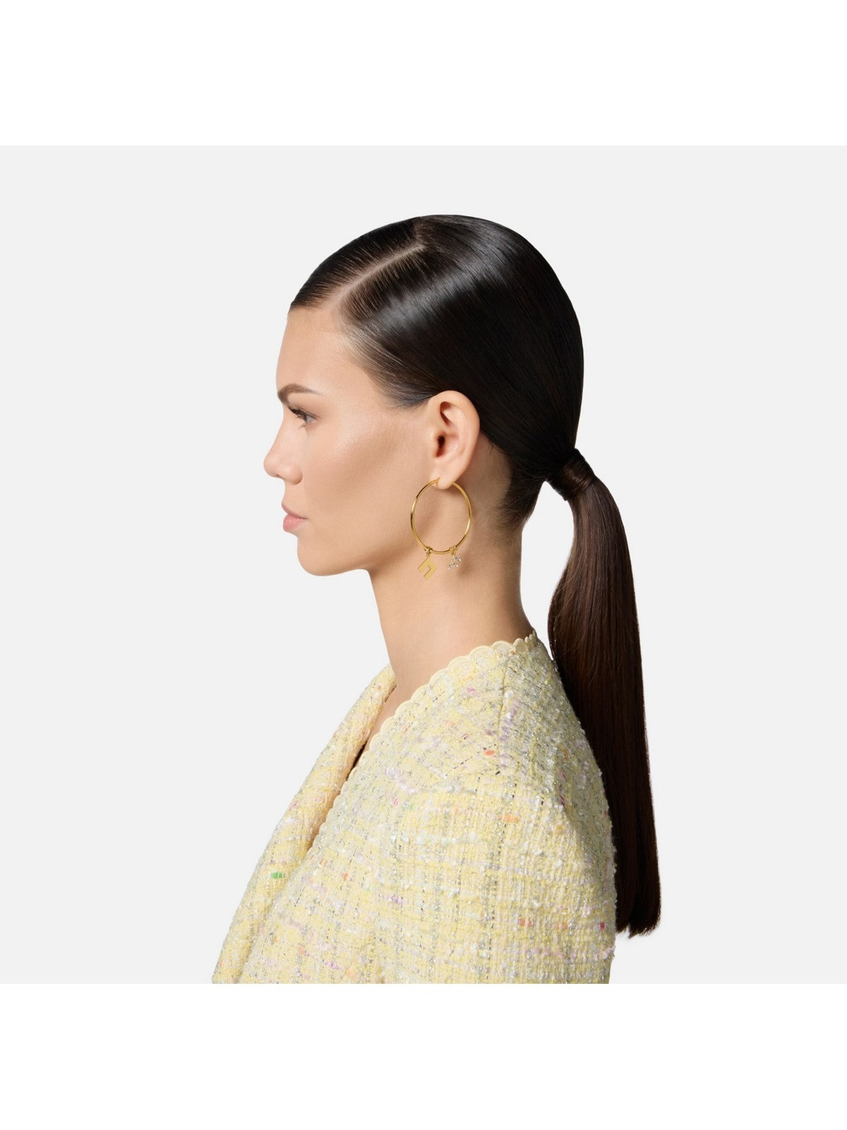 Il logo in finitura dorata e le lettere in strass non solo rendono questi orecchini unici, ma conferiscono anche un senso di esclusività, facendo di ogni dettaglio un piccolo gioiello da ammirare. Se cerchi un accessorio che esprima la tua personalità con grazia e stile, questi orecchini sono un must-have per il tuo guardaroba.