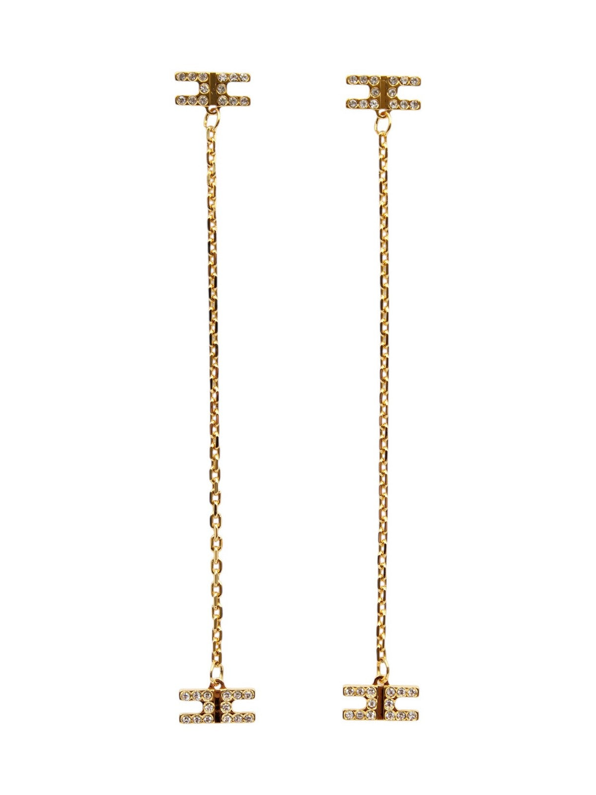 Questi eleganti orecchini pendenti sono il perfetto equilibrio tra raffinatezza e brillantezza. Il logo è impreziosito da una lavorazione meticolosa che riflette la luce in modo da emanare un'eleganza discreta ma visibile.