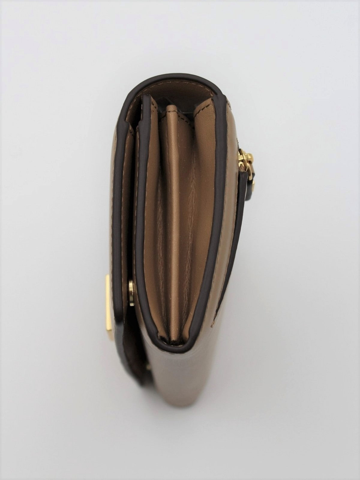 Questo portafoglio è l'accessorio perfetto per chi cerca un tocco di eleganza sofisticata senza rinunciare alla praticità. La chiusura automatica, con placca logo in metallo dorato, dona un'aria raffinata e distintiva. Il design compatto e ben strutturato la rende perfetta per portare con sé l'essenziale in modo ordinato e stiloso.