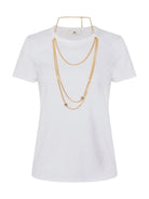 T-shirt ELISABETTA FRANCHI in jersey dalla vestibilità slim. È impreziosita dalla collana a doppio filo con logo, trattenuta dai passanti nel taglio della spalla.
