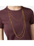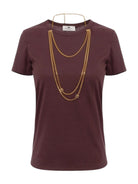 T-shirt ELISABETTA FRANCHI in jersey dalla vestibilità slim. È impreziosita dalla collana a doppio filo con logo, trattenuta dai passanti nel taglio della spalla.