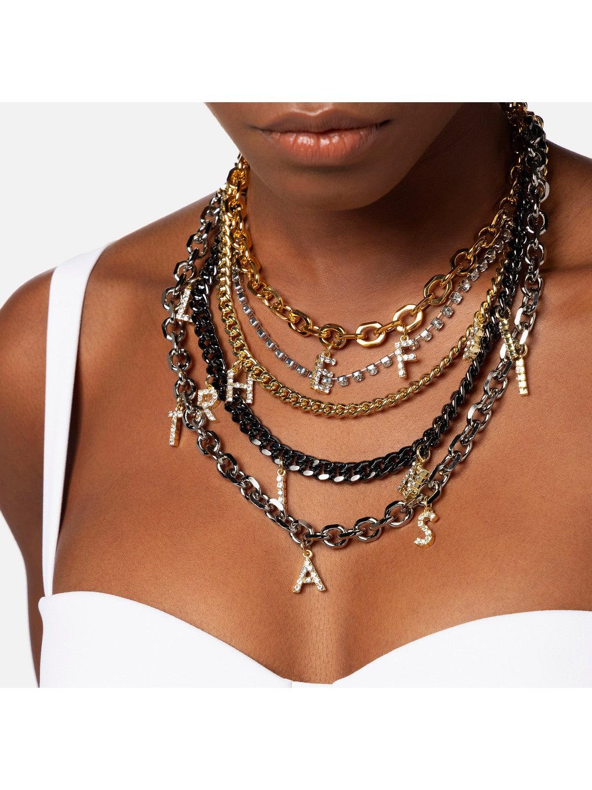 Top bustier ELISABETTA FRANCHI in doppio crêpe stretch con coppe. Caratterizzato da accessorio collana realizzato con mix di catene e charms in strass. Spalline regolabili. Chiusura con zip sulla schiena.