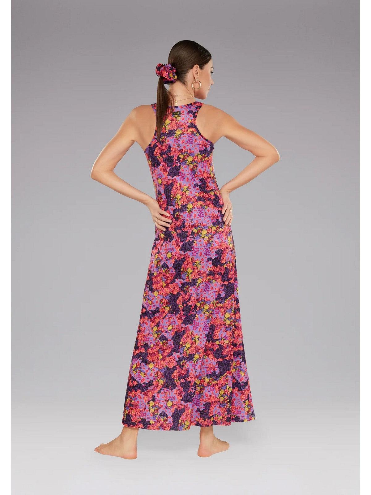 Vestito lungo F**K in tessuto jersey a fantasia all-over. Scollatura a giro con bretelle larghe. Spacco laterale.