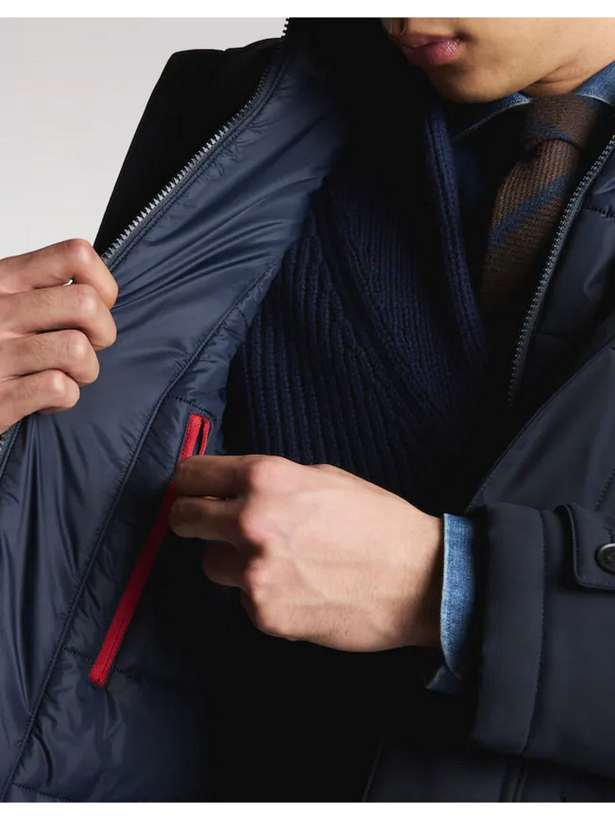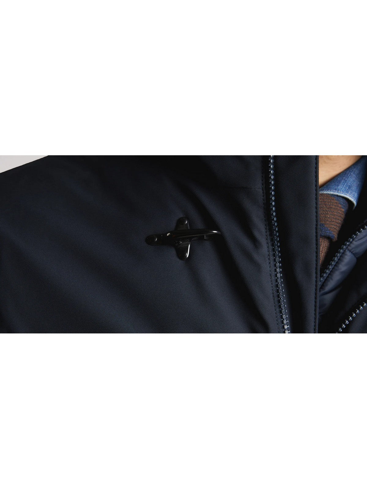? Chiusura con zip, bottoni e l'iconico gancio Fay all'altezza del collo