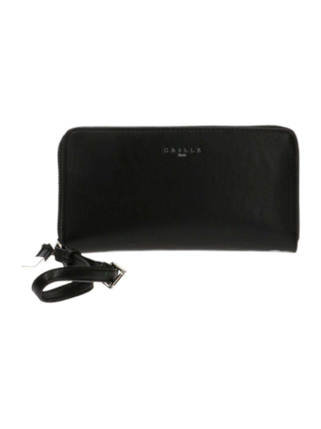 Portafoglio Gaëlle in ecopelle liscia e logo inciso frontale a contrasto argento. Cinturino da polso removibile. Chiusura con zip. All'interno scomparti per documenti, banconote, carte business e monete. Dimensioni: 10 x 20 x 3 cm