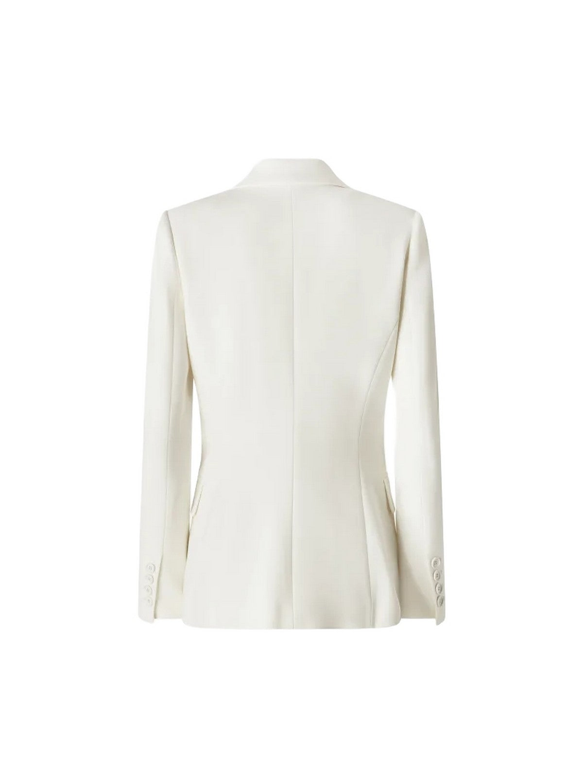 Giacca blazer monopetto dalla linea sfiancata in tessuto tecnico di viscosa stretch lavorata a punto stoffa. Il capo è rifinito da dettagli dal gusto sartoriale, come le pinces che accompagnano ed enfatizzano la figura, e da elementi classici come il collo a revers e le tasche con pattina. Abbina il blazer con il pantalone nello stesso tessuto per un effetto tailleur, oppure indossa una camicia per un look formale, ma non troppo.