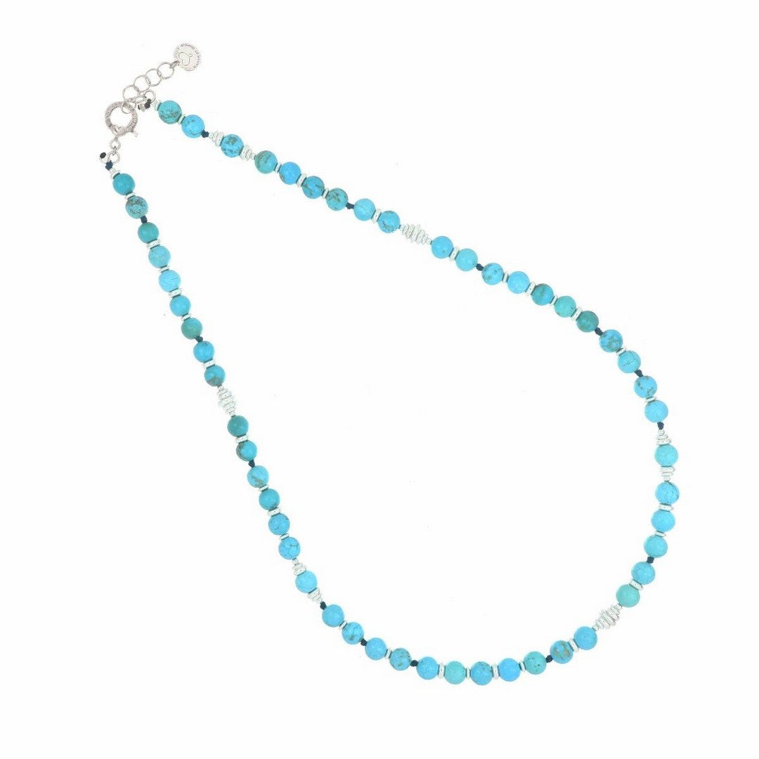 Girocollo realizzato in argento naturale 925 con pietre di aulite turchese.