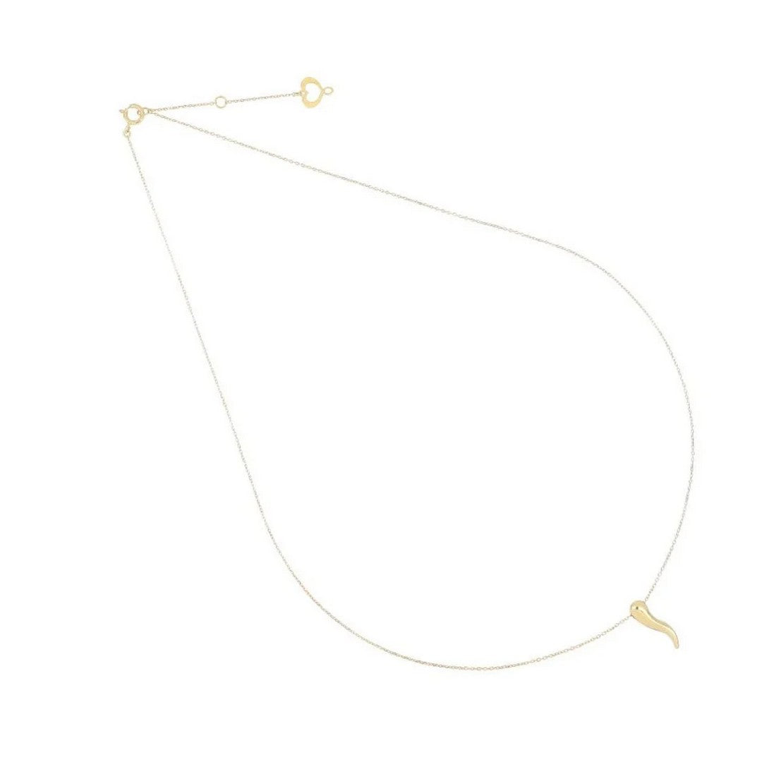 Girocollo in oro giallo 18 carati con un cornetto pendente.