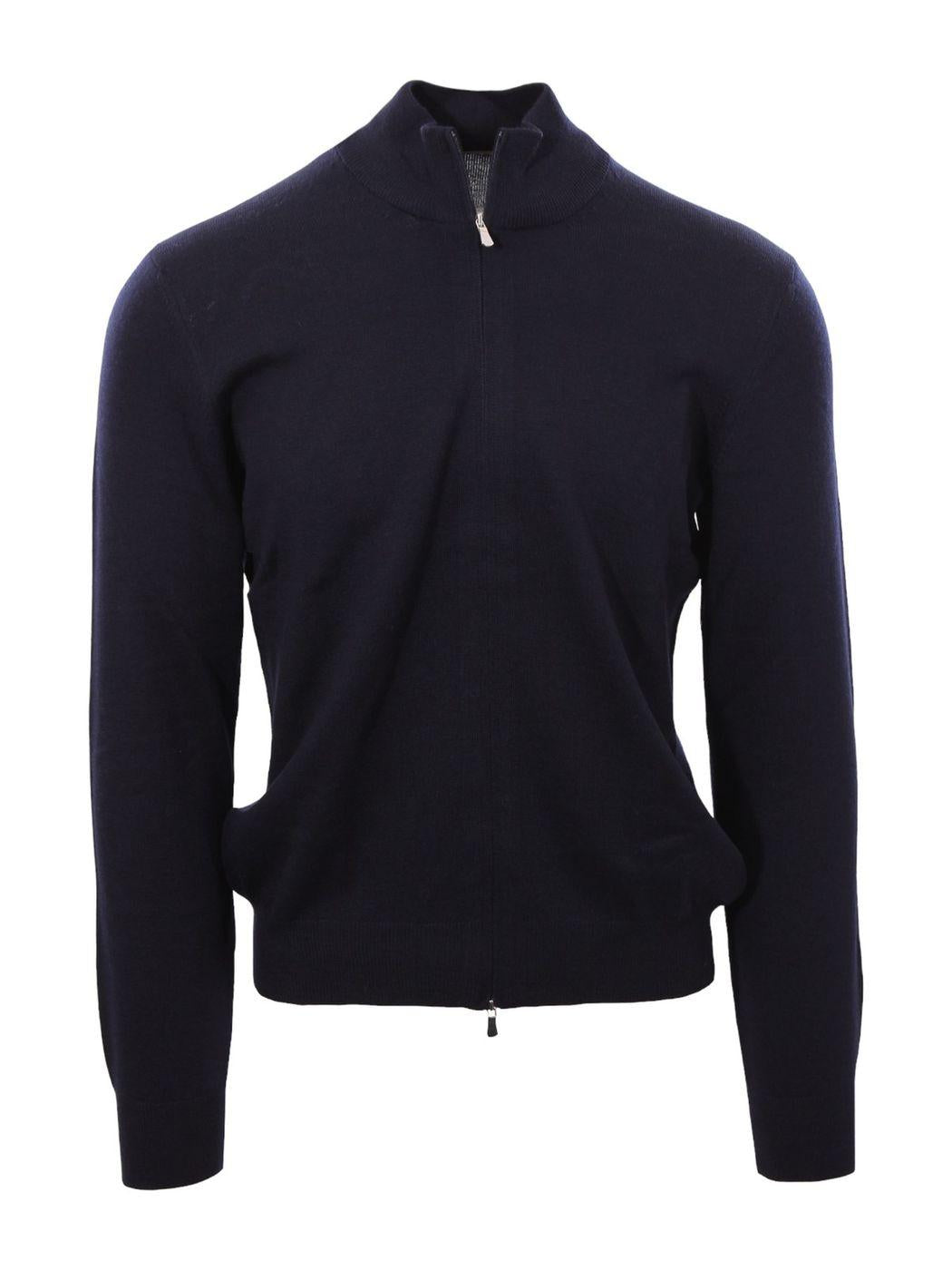 Cardigan Gran sasso in lana vergine. Chiusura con zip a doppio cursore. Rifinito a coste su collo, polsi e fondo.