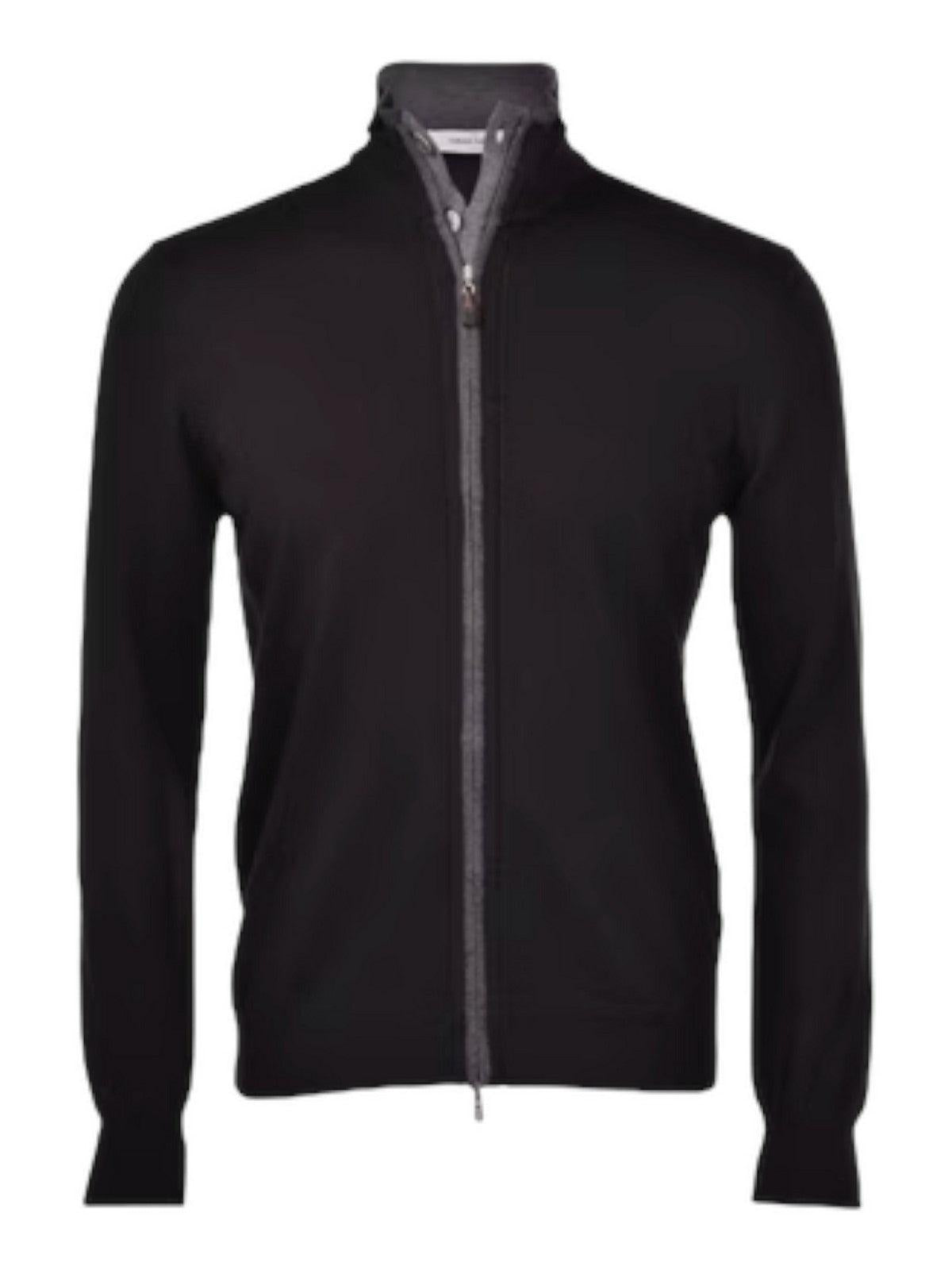 Cardigan GRAN SASSO in pura lana merinos, tinta unita. Chiusura a zip doppio cursore e bottoni. Rifinito a coste su polsi e fondo. Fashion fit.