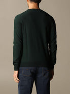 Maglione GRAN SASSO in lana merinos extrafine, colore verde. Caldo e sottile. Collo a giro e maniche lunghe. Vestibilità fashion fit. Rifinito a coste su fondo, collo e polsi.