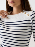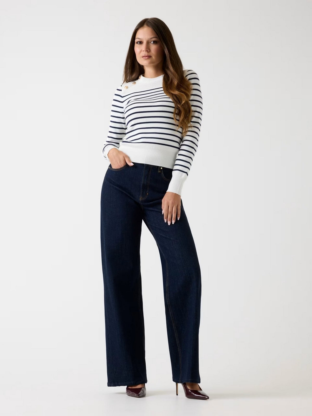 GUESS Abito Donna LS CN HELEN SWTR W5BR36 Z0422 S00J CREAM AND BLUE STRIP