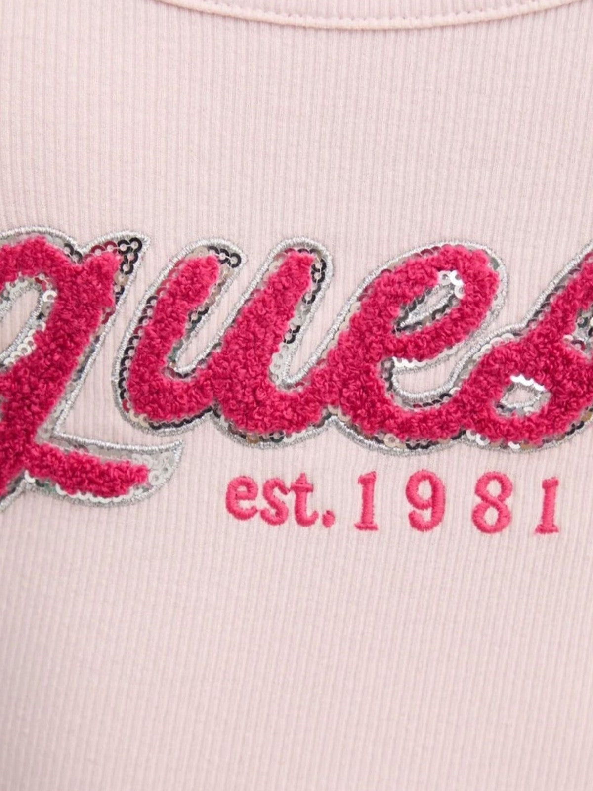 GUESS Body Donna CHENILLE LOGO TANK TOP RIB W5RP03 KA0H1 A60W Rosa