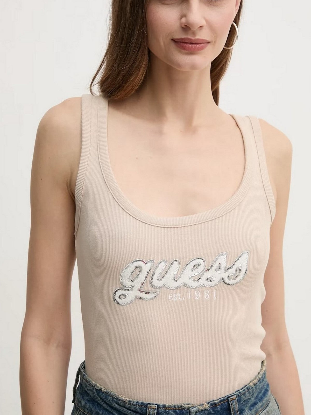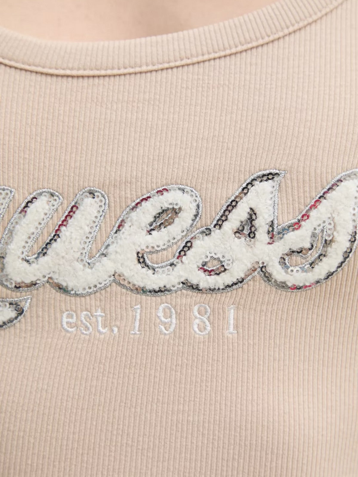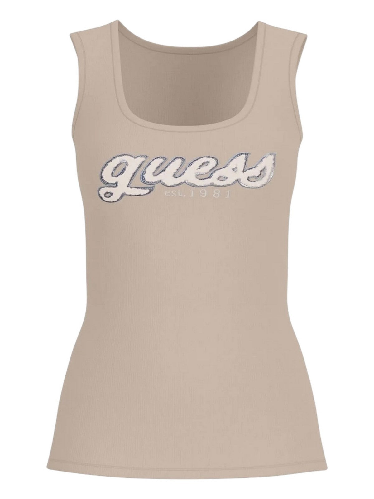 GUESS Body Donna CHENILLE LOGO TANK TOP RIB W5RP03 KA0H1 A90F CEMENTO