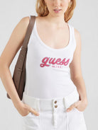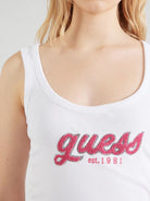 GUESS Body Donna CHENILLE LOGO TANK TOP RIB W5RP03 KA0H1 G011 Bianco