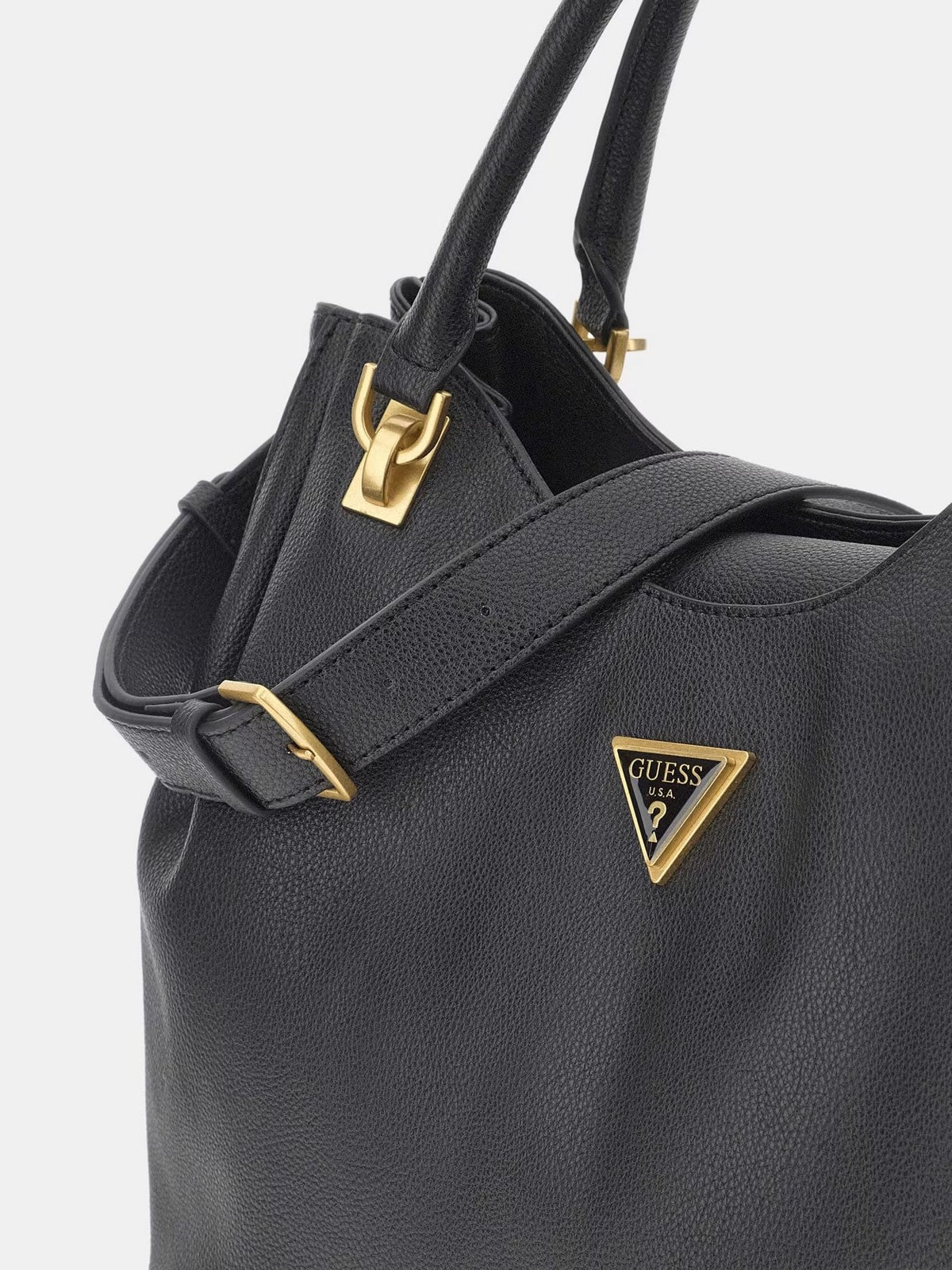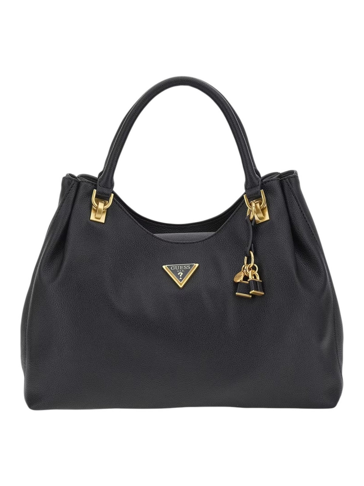 Borsa GUESS in simil pelle. Triangolo logo in metallo frontale. Chiusura con bottone.