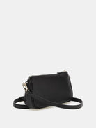 Borsa tracolla GUESS in simil pelle, lavorazione saffiano.. Triangolo logo frontale. Doppio scomparto con zip.