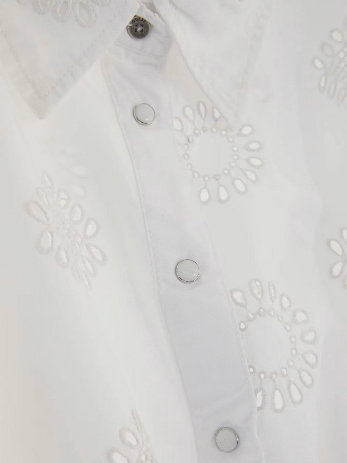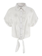 Camicia GUESS in Lyocell. Ricamo all over. Colletto classico e maniche corte. Nodo frontale. Chiusura con bottoni.