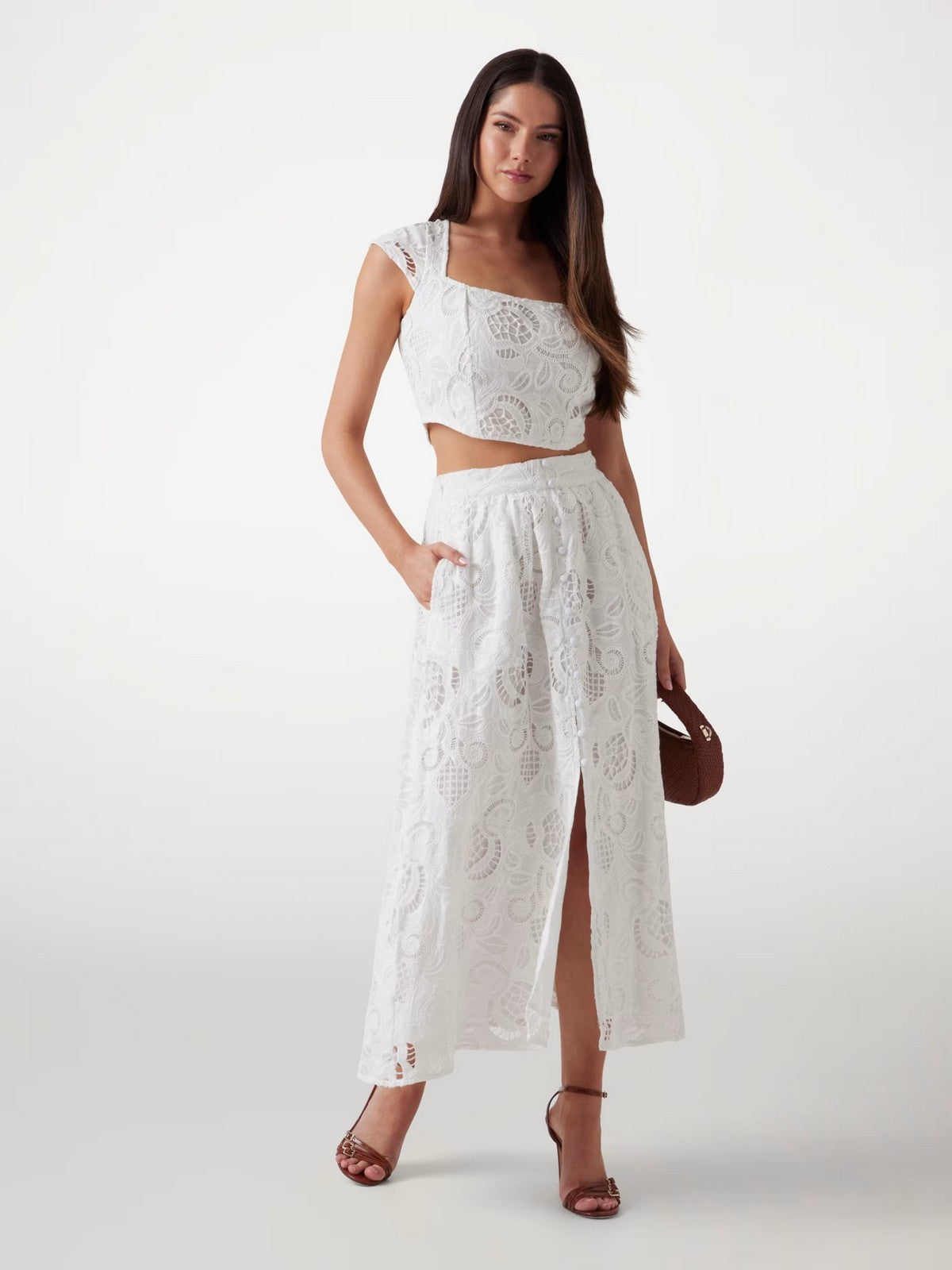 GUESS Gonna Donna DOMITILLE LONG EMBRO SKIRT W5GD63 WH521 G011 Bianco