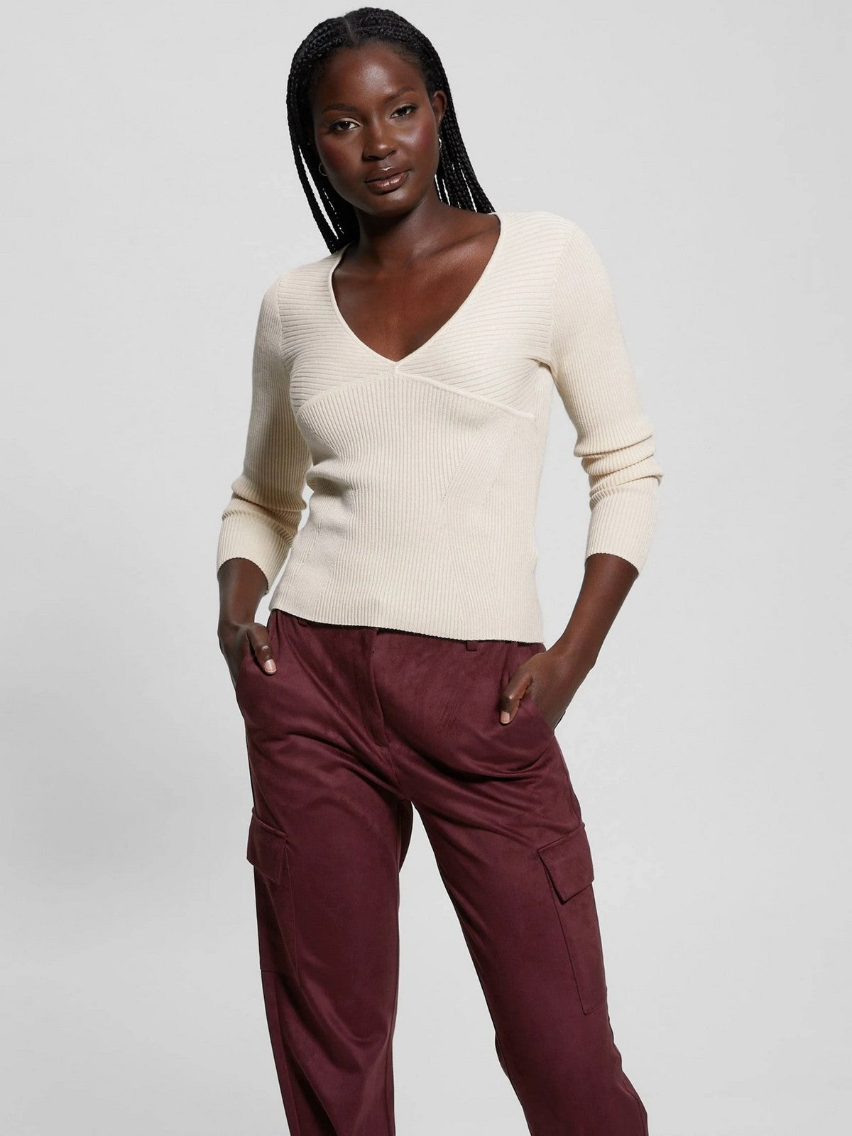 GUESS Maglione Donna LS CIRILA RIB BODYCON SWTR W4BR69 Z2YK2 G1M5 Bianco