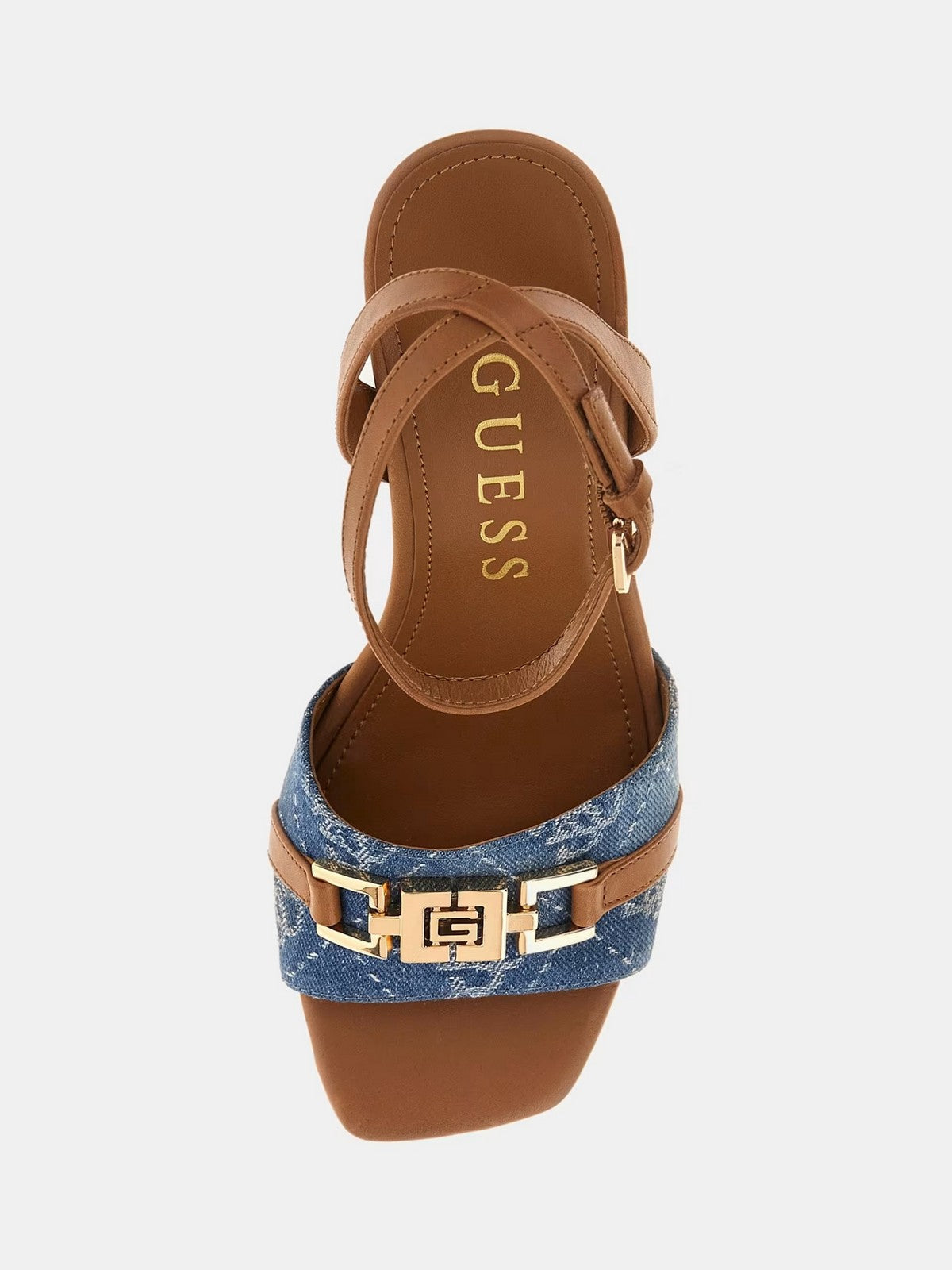 Sandalo GUESS in misto pelle e denim di cotone.
