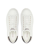 Sneaker GUESS in vera pelle. Scritta logo su suola fronte e lato. Inserto sul retro a contrasto colore motivo logo 4G e peony.