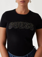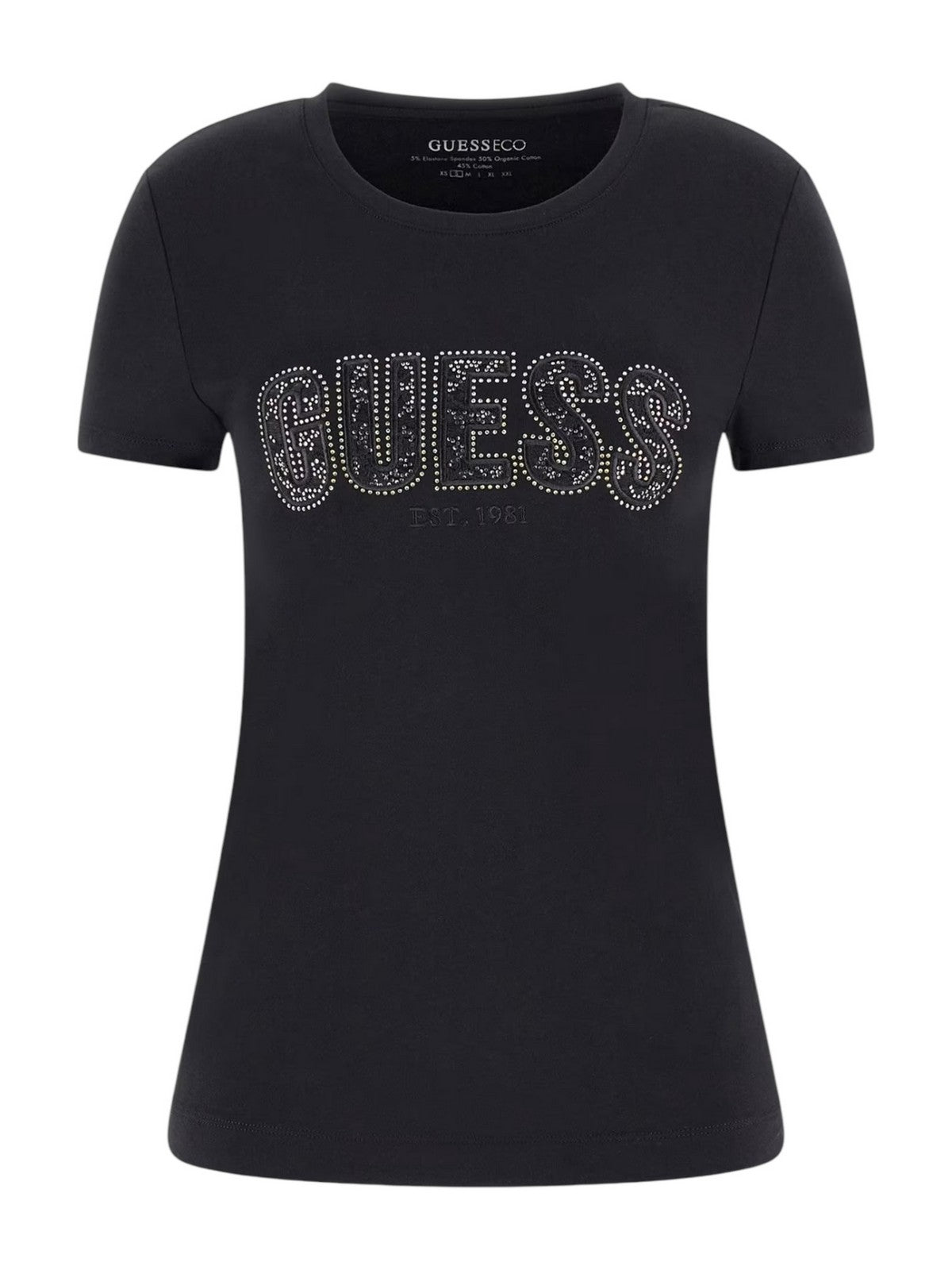 GUESS T-shirt Donna CN SS LOGO LACE TEE W5GI04 J1314 JBLK Nero