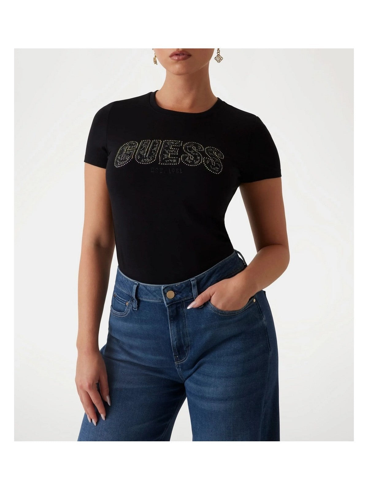 GUESS T-shirt Donna CN SS LOGO SEGQUINS TEE W5GI17 J1314 JBLK Jet Black A996