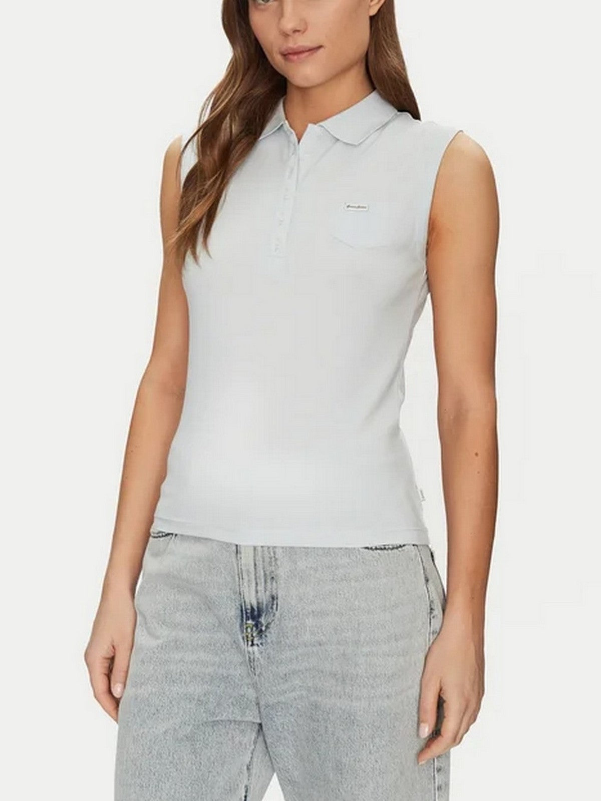 GUESS T-shirt Donna GJ SLEEVELESS COLLAR SLIM PKT W5GP24 KCYR1 G7O7 AZURE LAGUNA