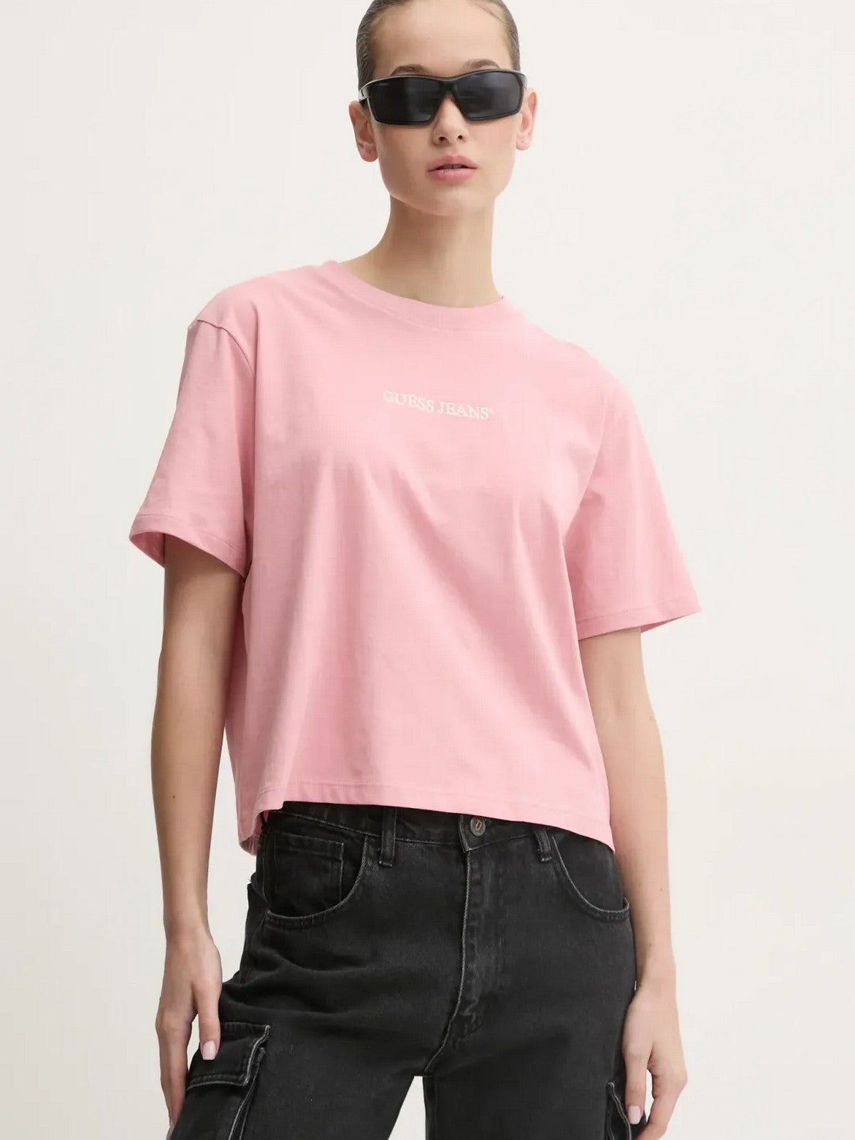 GUESS T-shirt Donna GJ SS CN BOXY EMBRO LOGO TEE W5RI42 K8HM0 G682 Rosa