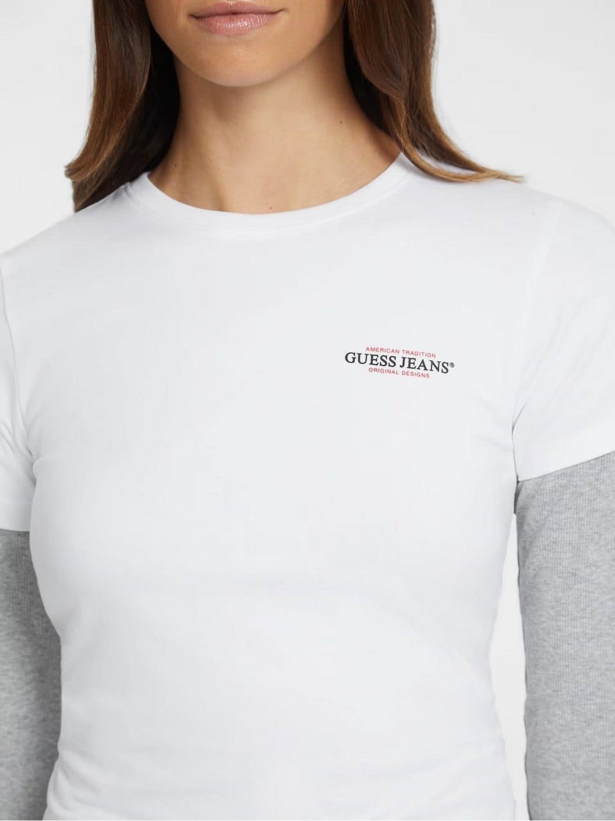 GUESS T-shirt Donna GJ SS CN SLIM MINI AMERICA TEE W4YI02 J1314 G011 Bianco
