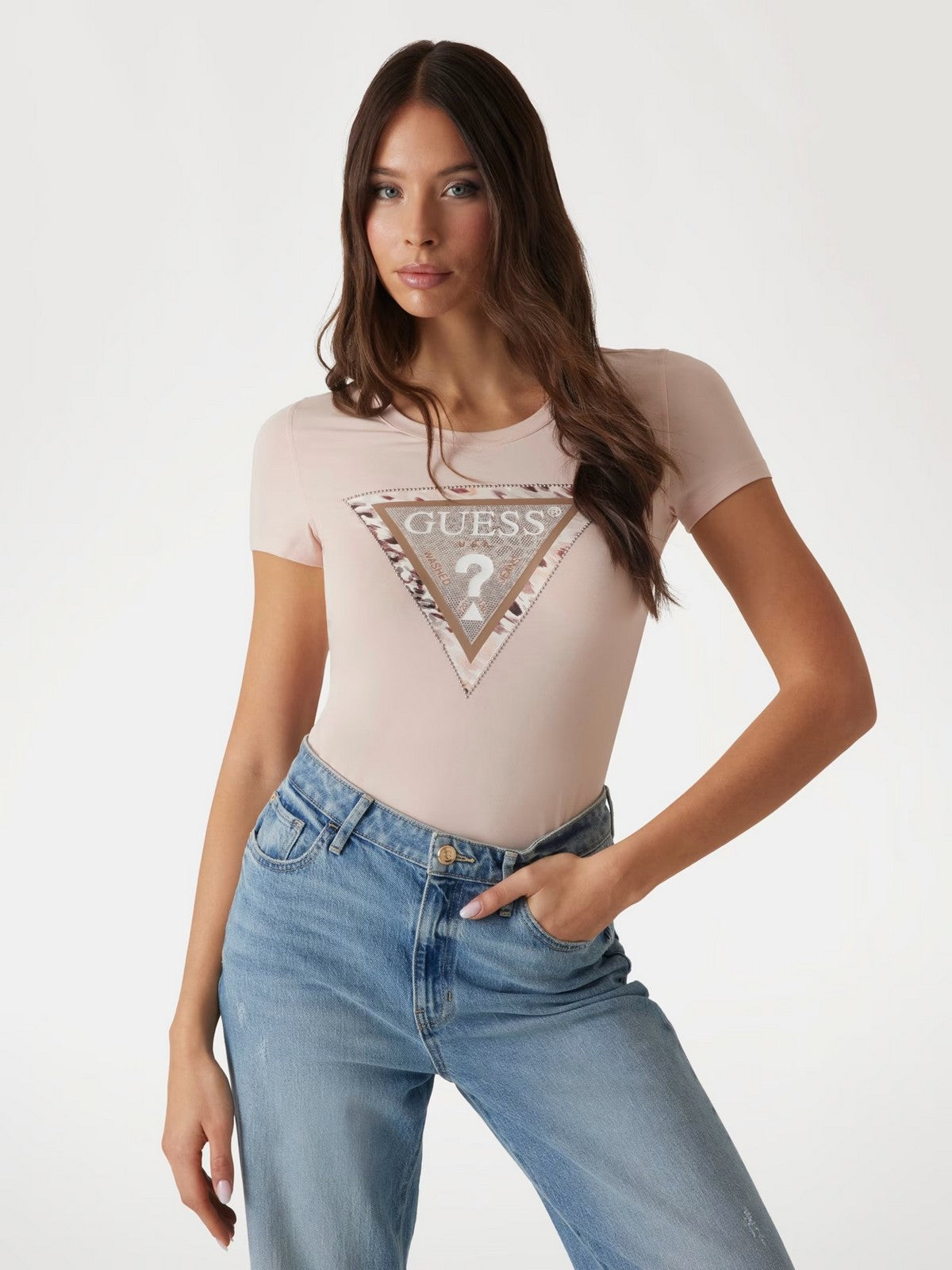 GUESS T-shirt Donna SS CN CHEETA LOGO TRIANGLE TEE W5RI22 J1314 G6O3 Rosa
