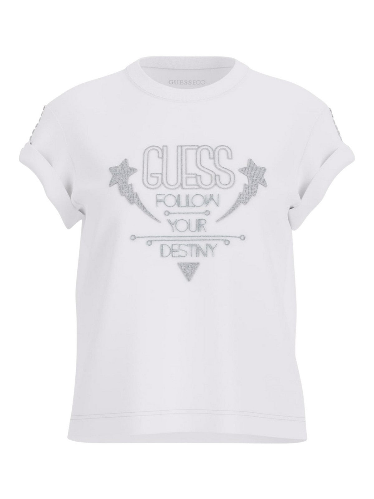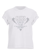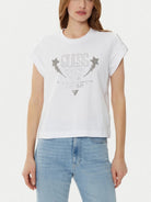 GUESS T-shirt Donna SS CN SLEEVES STRASS DETAIL W5RI06 I3Z14 G011 Bianco
