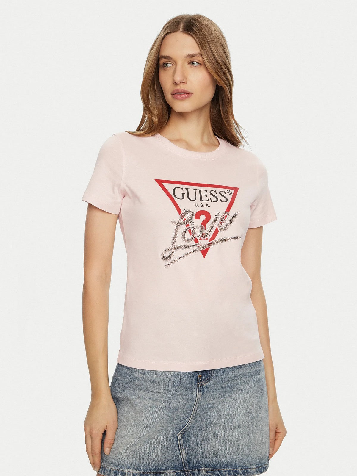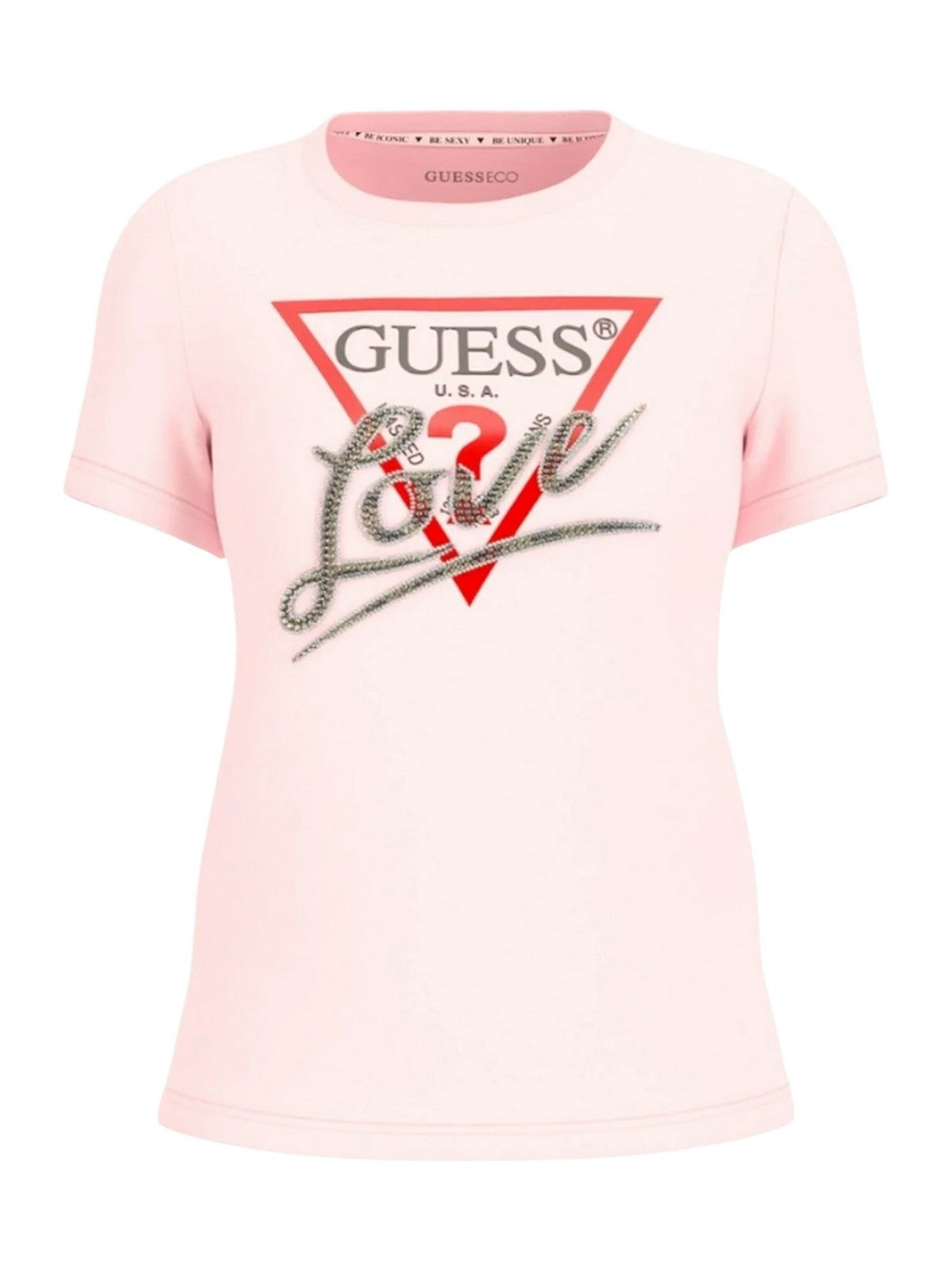 GUESS T-shirt Donna SS CN TRIANGLE LOVE TEE W5RI10 I3Z14 A60W Rosa