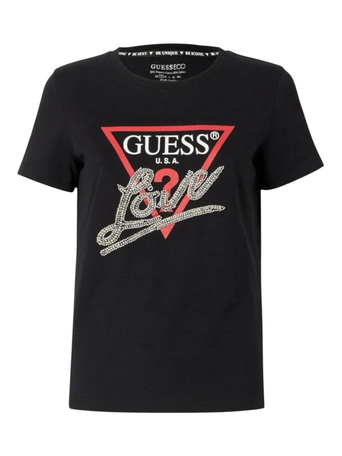 GUESS T-shirt Donna SS CN TRIANGLE LOVE TEE W5RI10 I3Z14 JBLK Nero