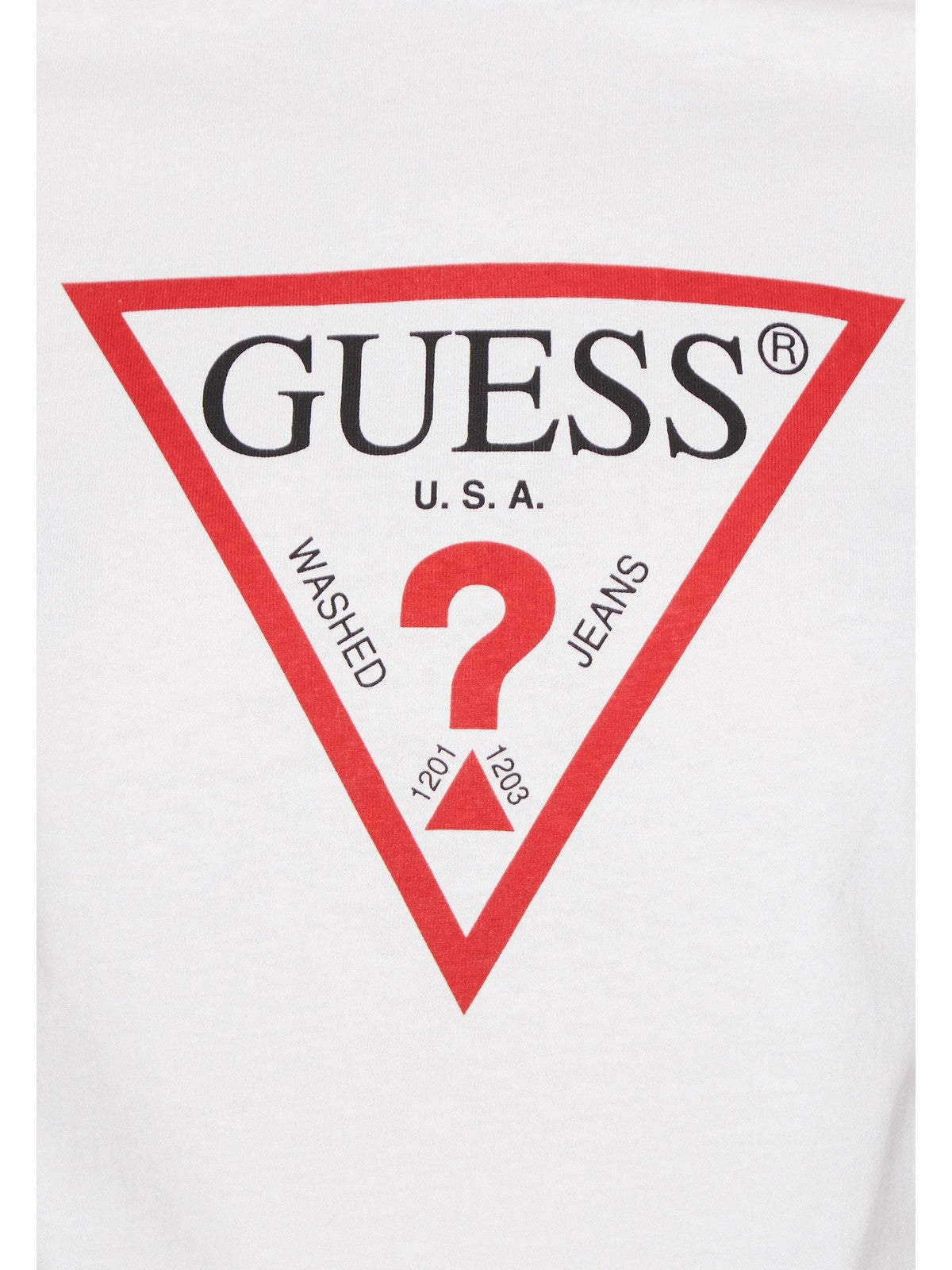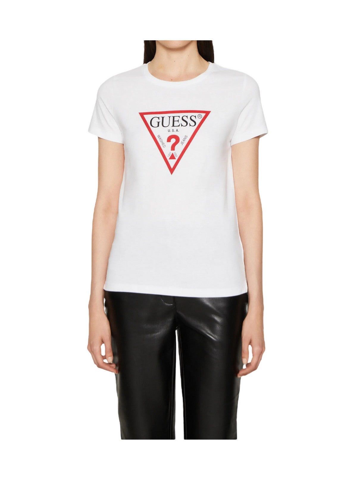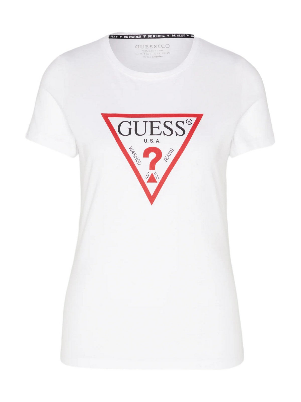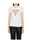 T-shirt GUESS in cotone. Triangolo logo sul fronte. Collo a giro e maniche corte. orlo dritto.
