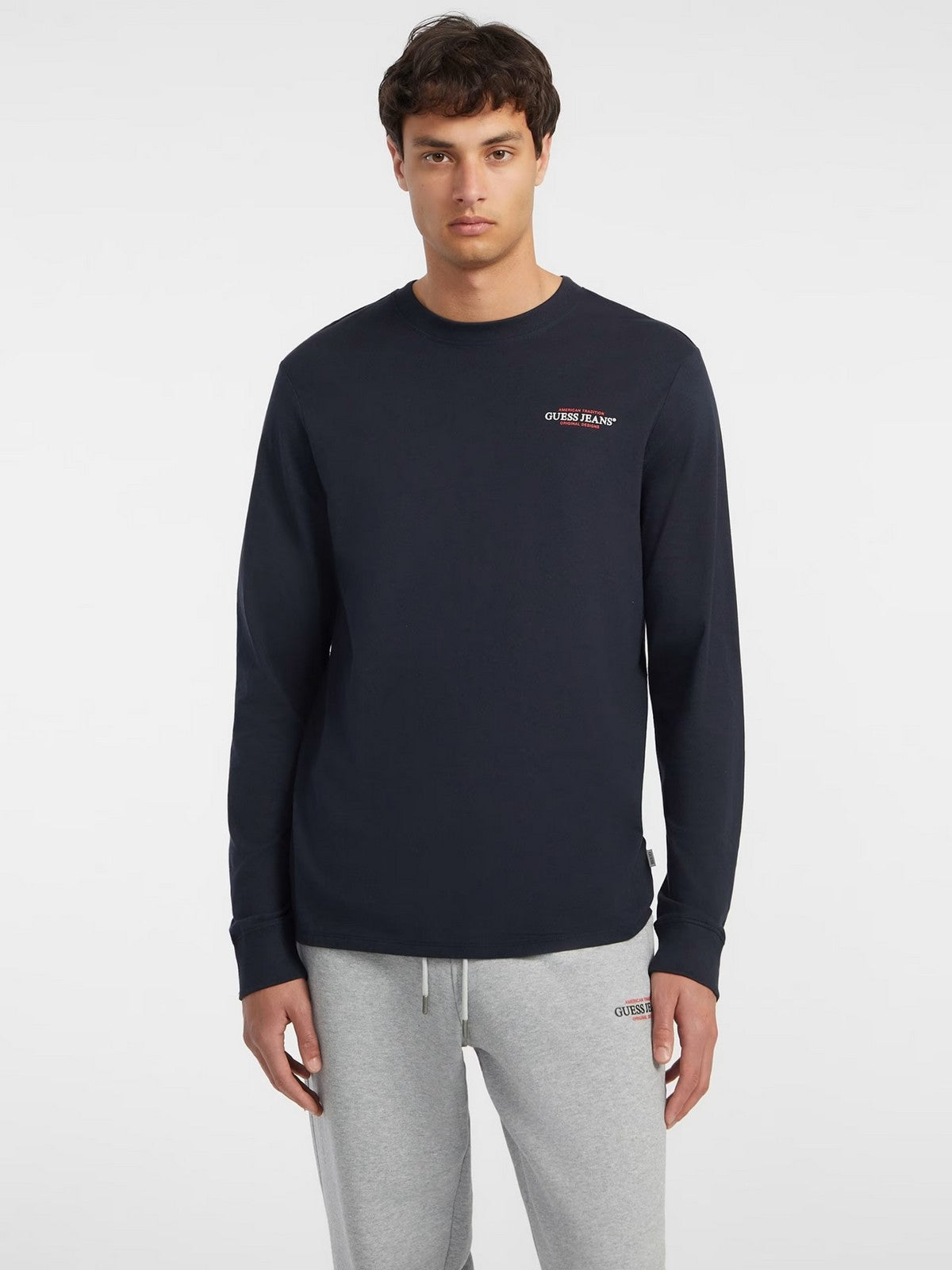 GUESS T-shirt Uomo GJ LS CN SLIM AMERICAN TR TEE M4YI54 K8HM0 A71W DARING OCEAN