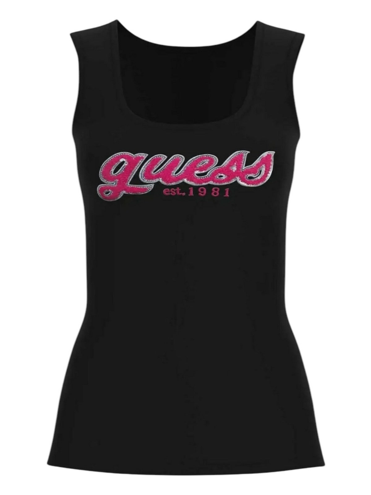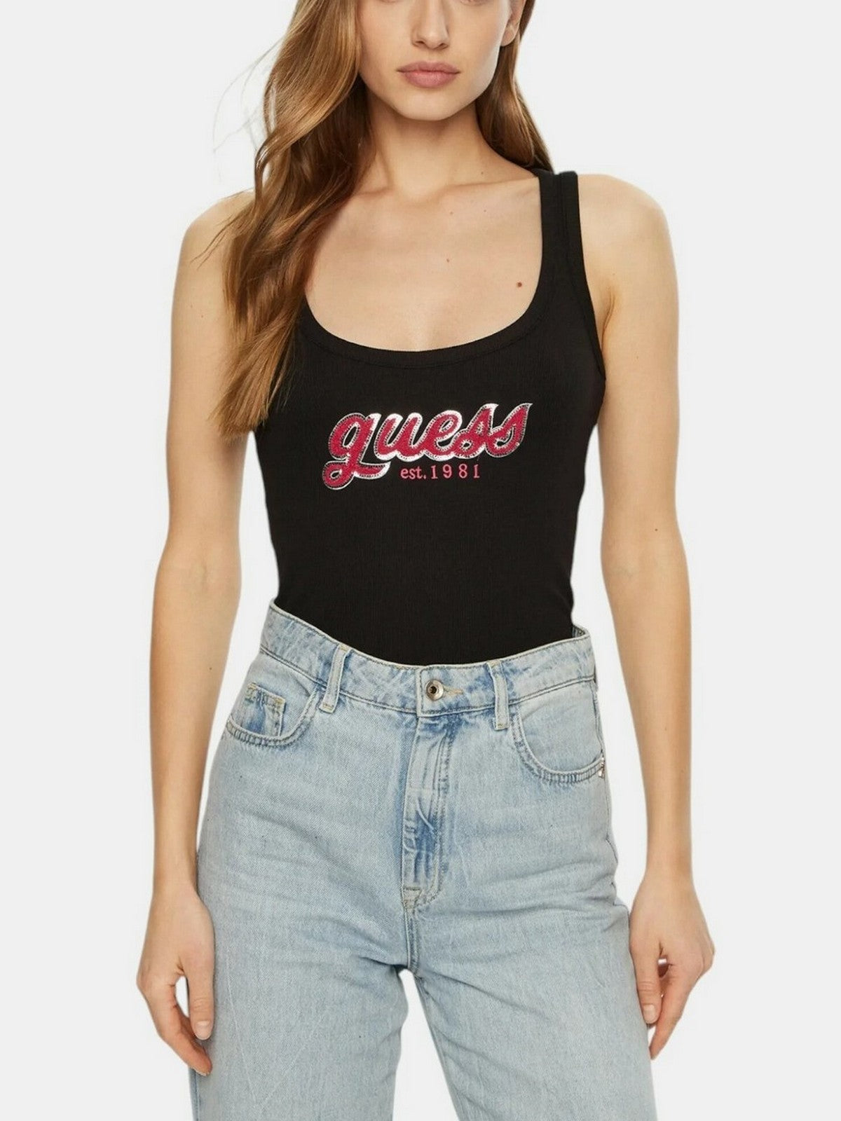 GUESS Top Donna CHENILLE LOGO TANK TOP RIB W5RP03 KA0H1 JBLK Nero