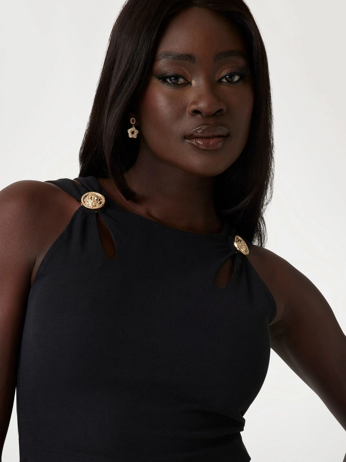 GUESS Top Donna ZAMA CUT OUT DETAILS CROP TOP W5RP13 KAQL2 JBLK Nero
