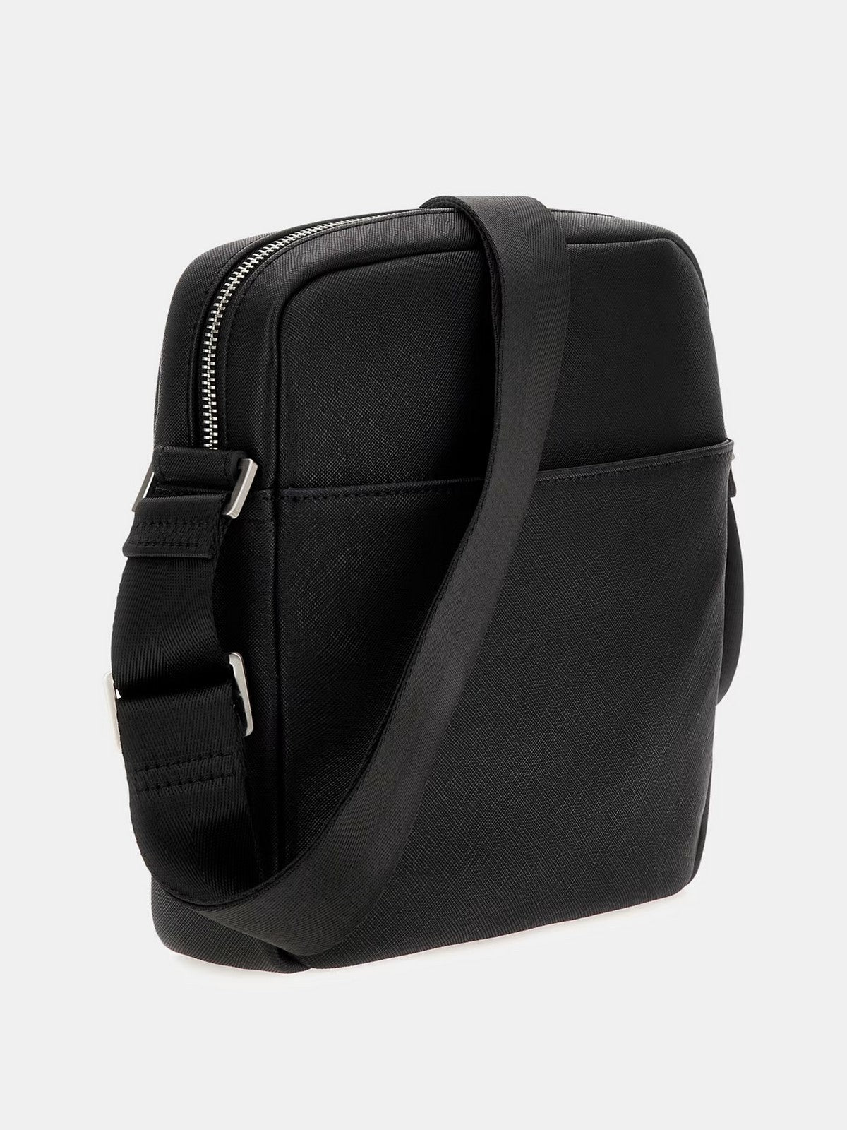 Tracolla GUESS in similpelle. Logo triangolo sul fronte. Tasca esterna. Scomparto principale con zip. Tracolla regolabile in tessuto.