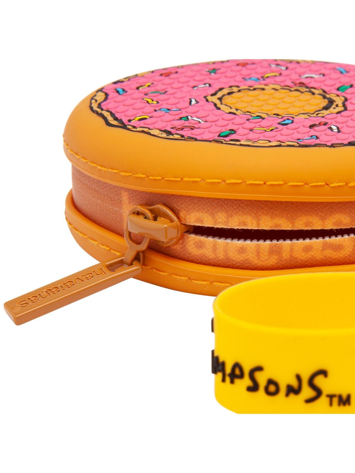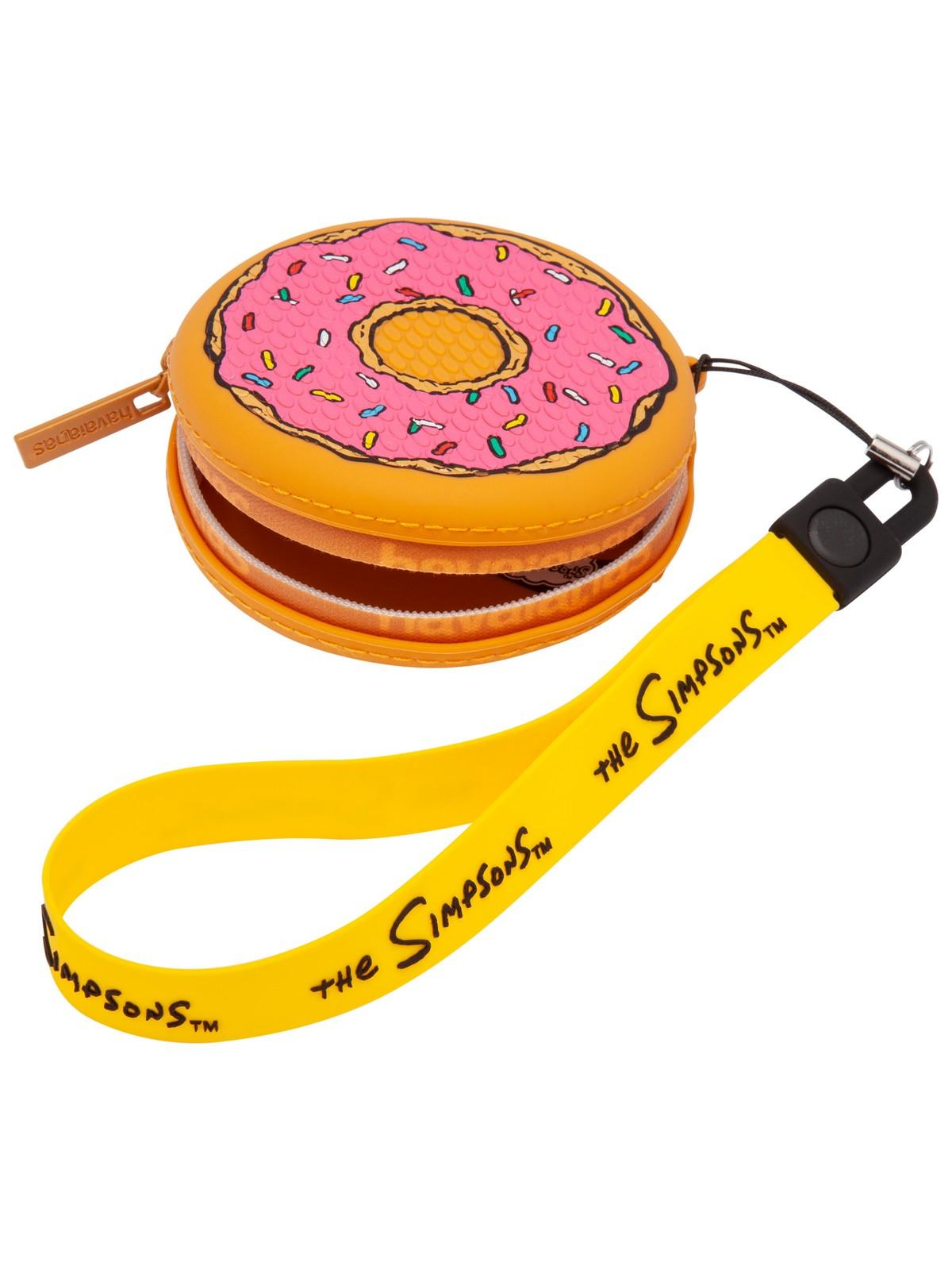 Portamonete HAVAIANAS in silicone, stampa ciambella Simpson. Chiusura con zip e cinturino da polso. Design rotondo.
