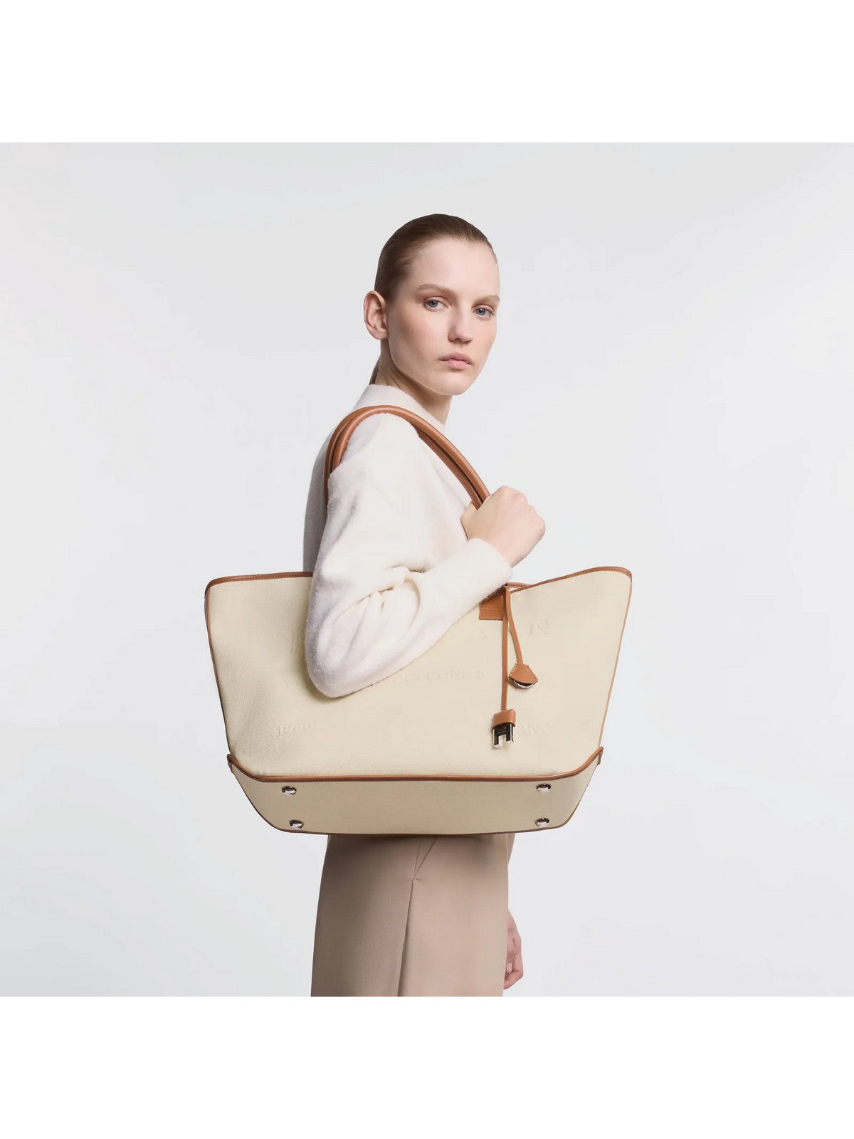 Shopping bag Hogan Script, con l'indirizzo del brand in rilievo. Caratterizzata da manici più sottili e un ampio vano regolabile con laccetti, è realizzata in canvas e pelle. Perfetta per l'everyday look urbano.