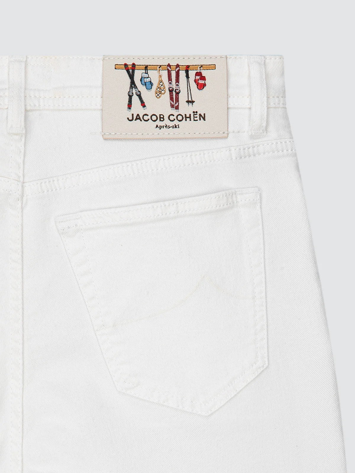 Jeans JACOB COHEN in denim bull stretch di cotone bianco con lavaggio enzimatico, effetto bleach ottico e texture morbida (9 once)