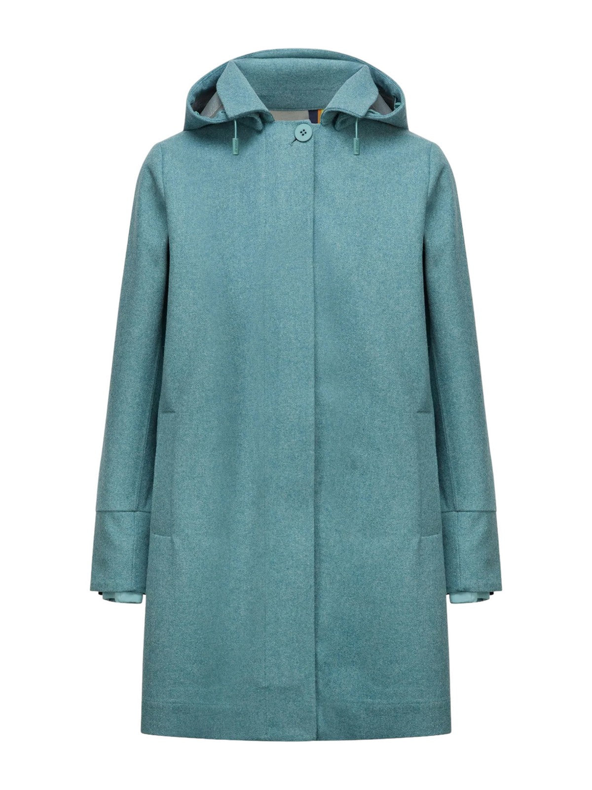 Cappotto lungo donna K-WAY realizzato in lana con membrana interna argento impermeabile, idrorepellente, antivento.