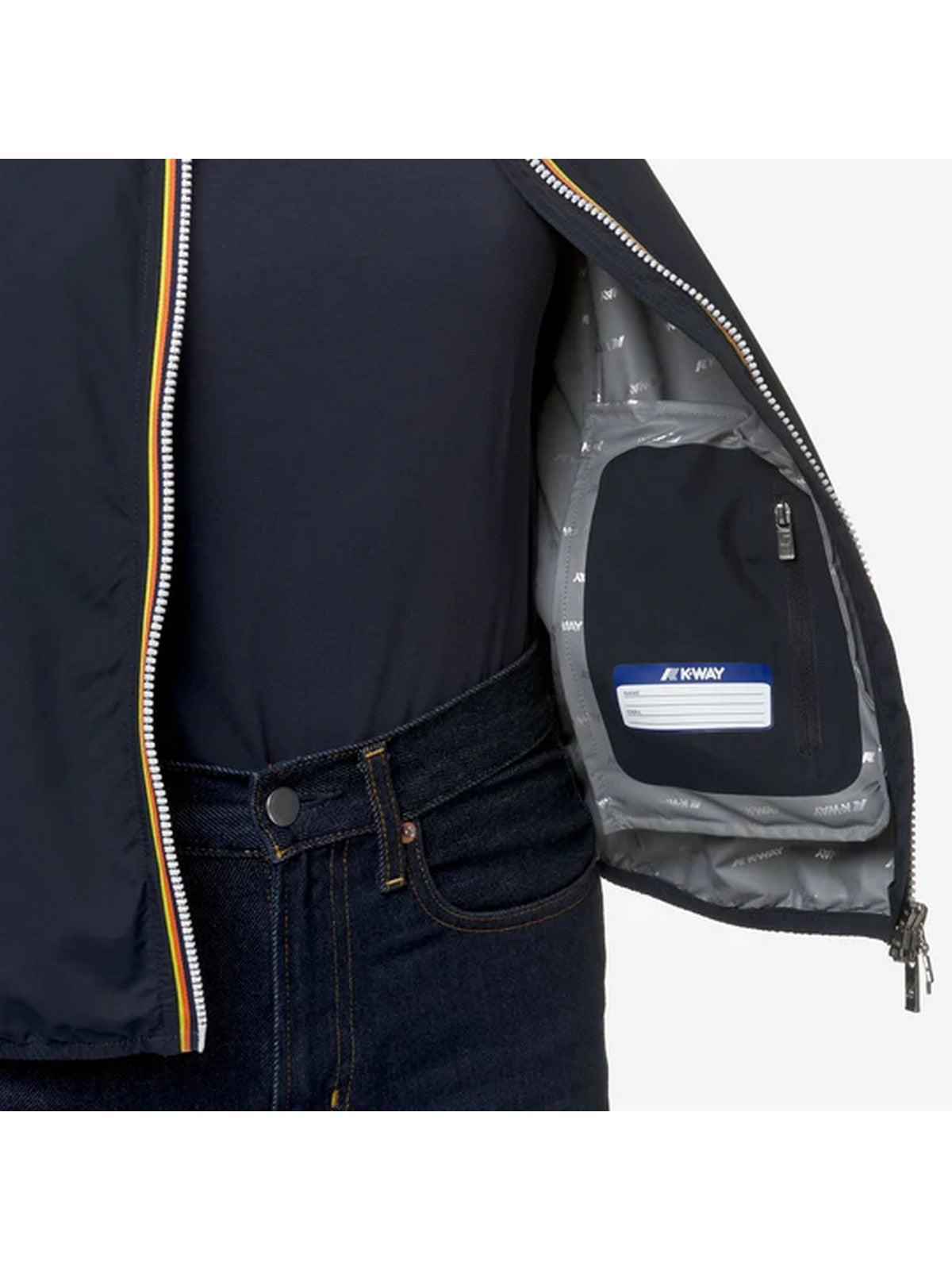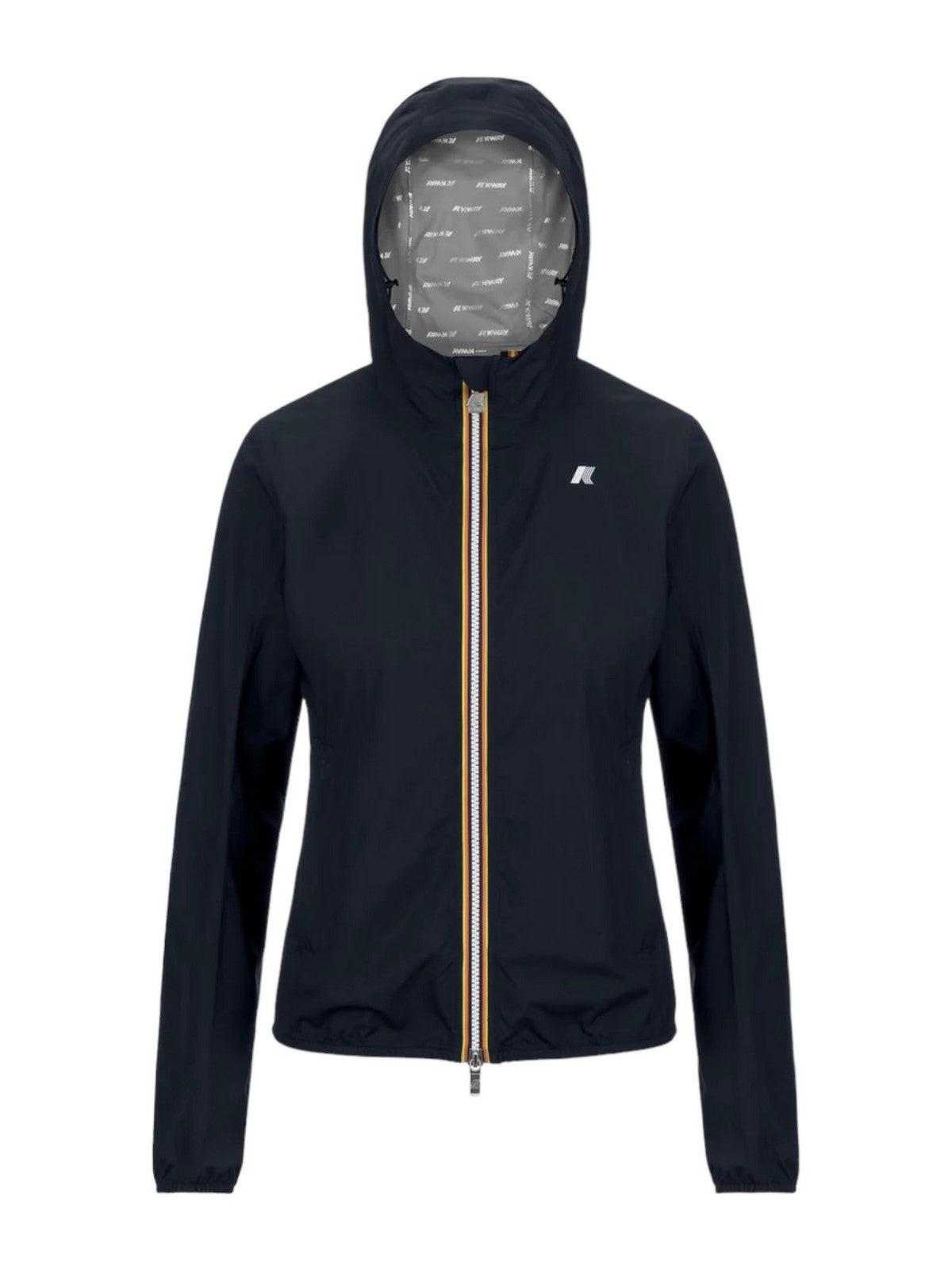 Giubbino K-WAY Lily in tessuto tecnico elasticizzato e riciclato, interno è foderato con una membrana isolante decorata con lettering K-Way stampato all over in tonalità argento. Collo con cappuccio e maniche lunghe con polsini e bordi con inserti elastici. Tasche laterali con zip