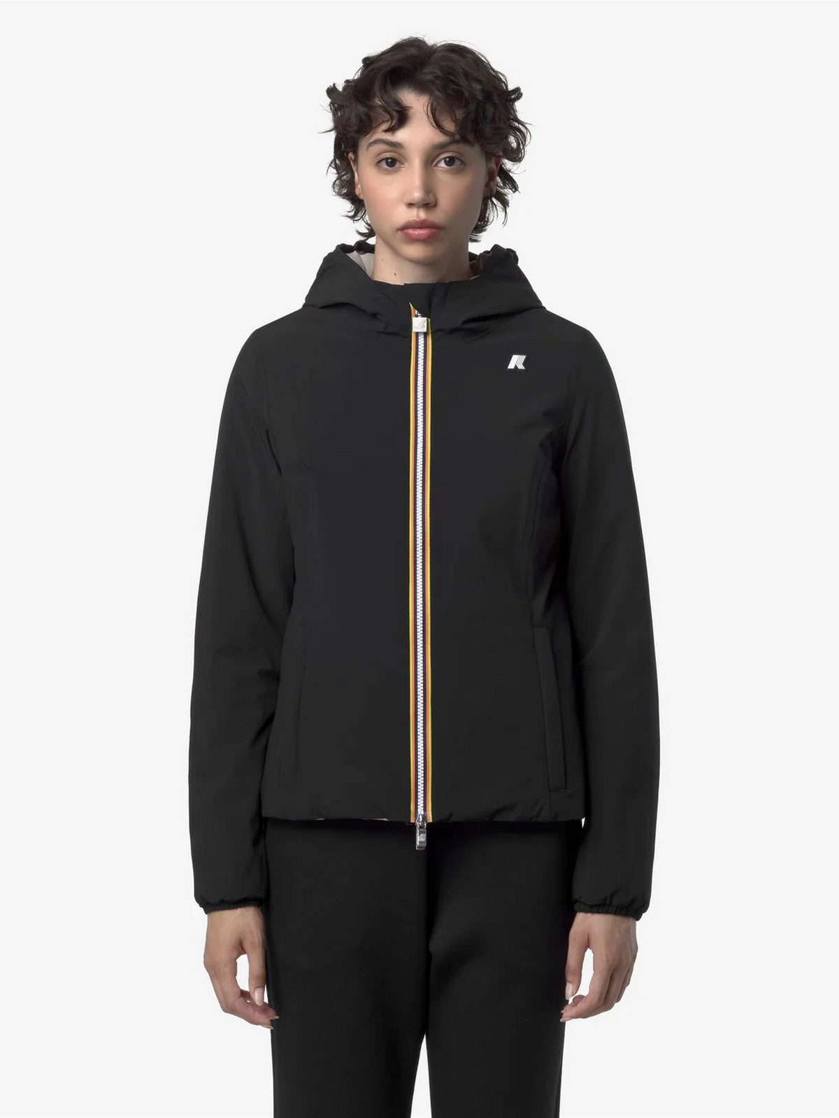 Giubbino donna K-WAY con un design reversibile in poliestere elasticizzato impermeabile e un lato in poliestere antivento dal colore a contrasto.