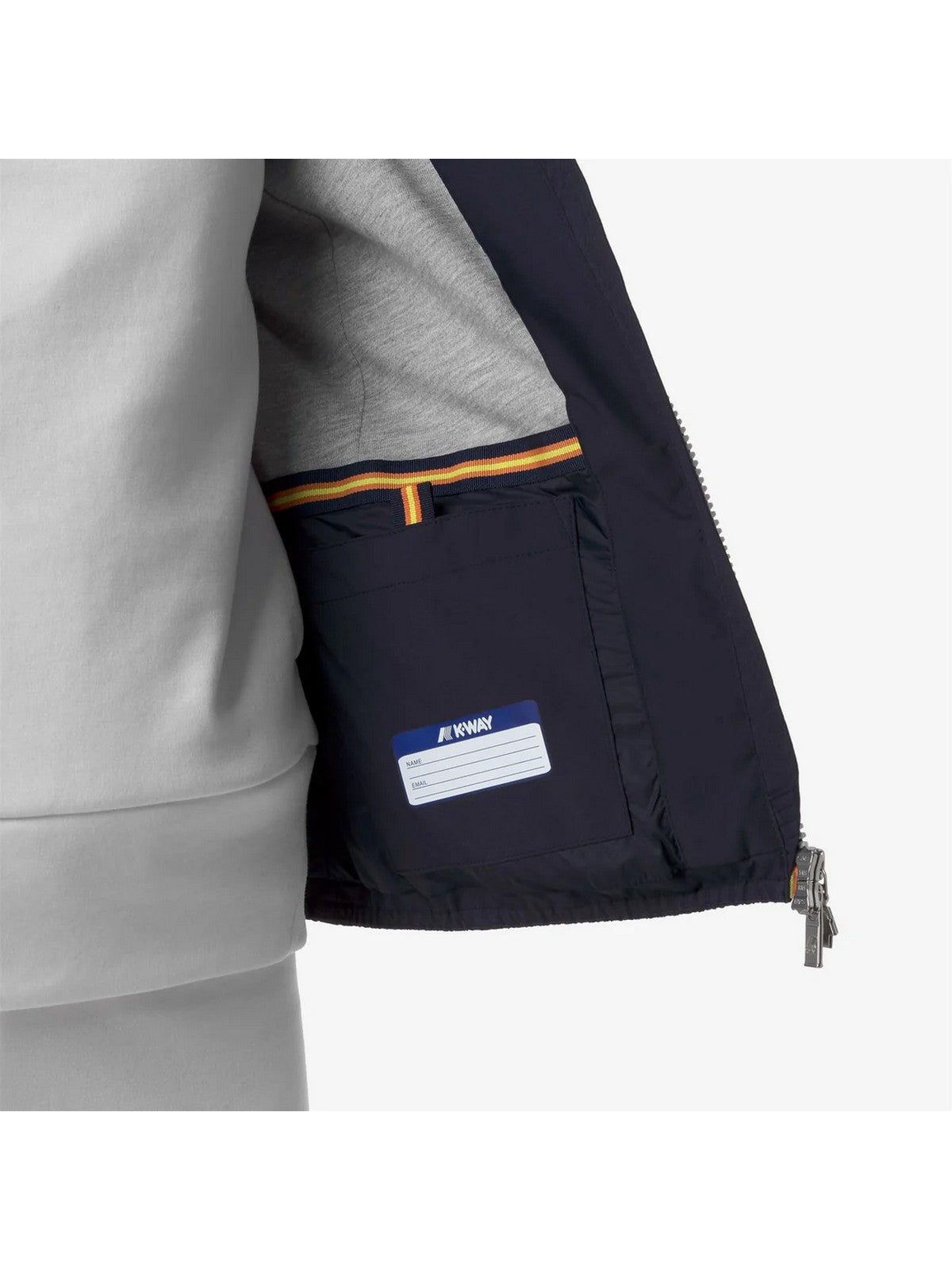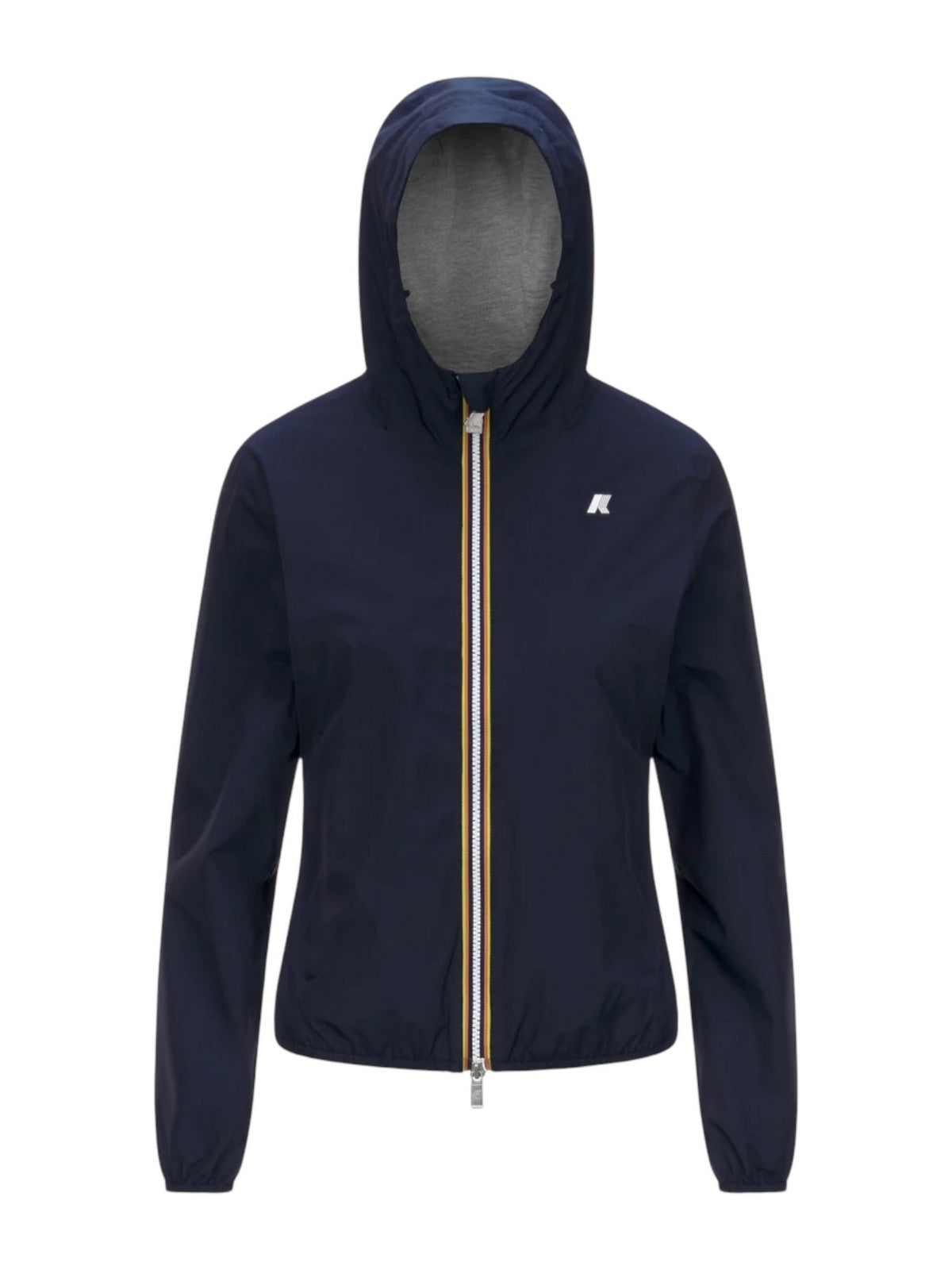 Giubbino K-WAY modello Lily realizzato in poliestere stretch con spalmatura impermeabile e antivento e la fodera in morbido jersey di cotone grigio melange.