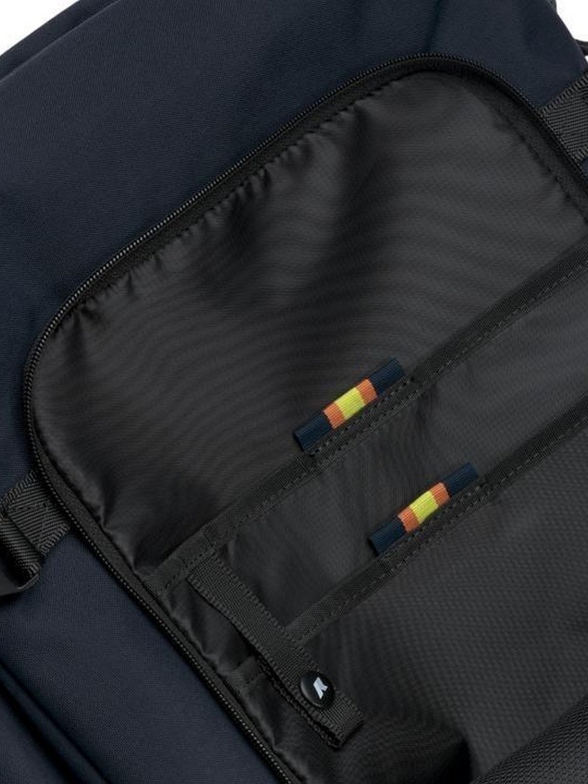 ? 1 tasca frontale con zip con all'interno 1 tasca in rete con zip e 2 tasche aperte con tape e gancio portachiavi.